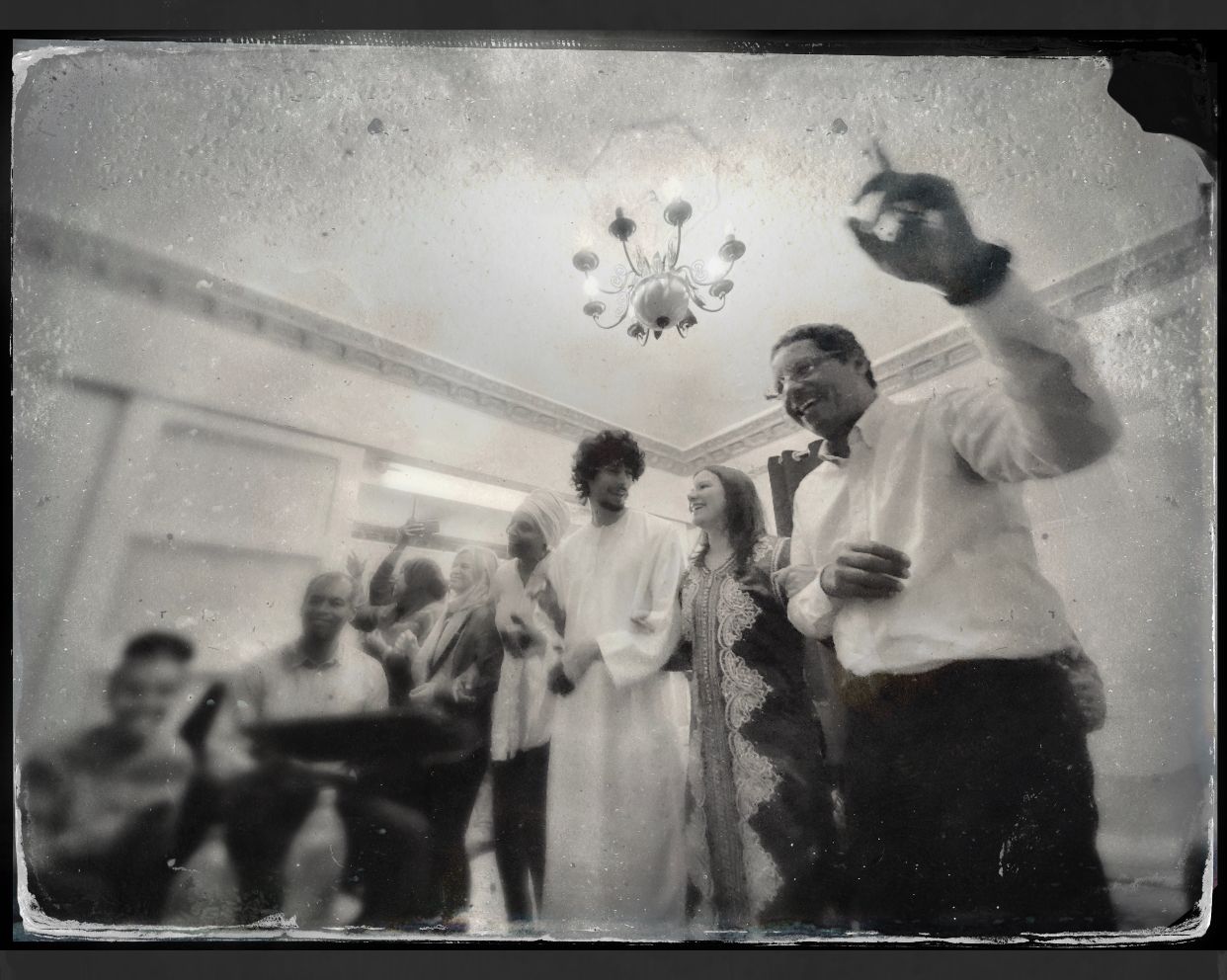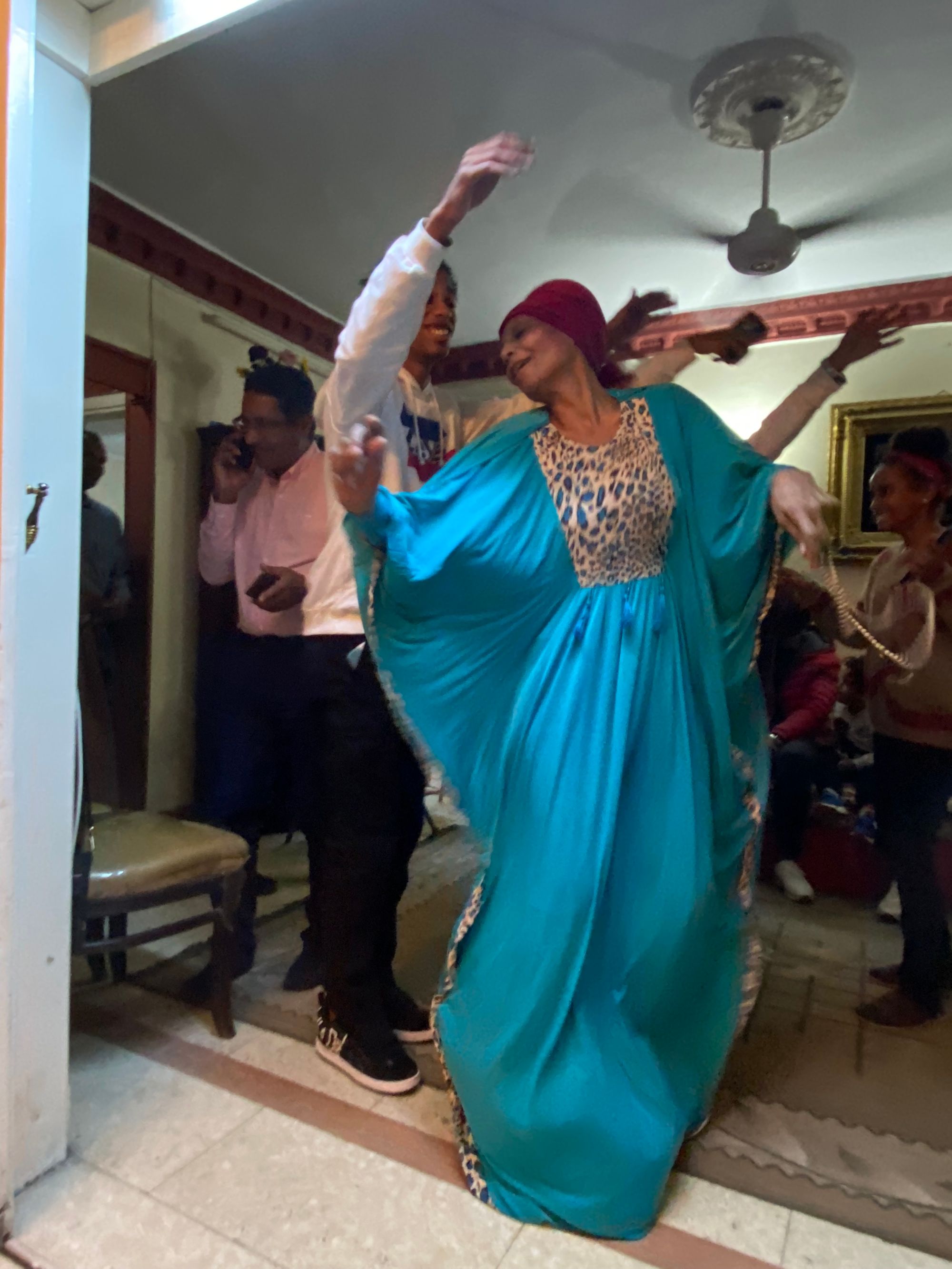 Mona, the mother of the groom, is a great dancer and knows all the Nubian songs including those in the Nubian language. Here she gets into the spirit. Her gown has an intense color, so I have included the original as well