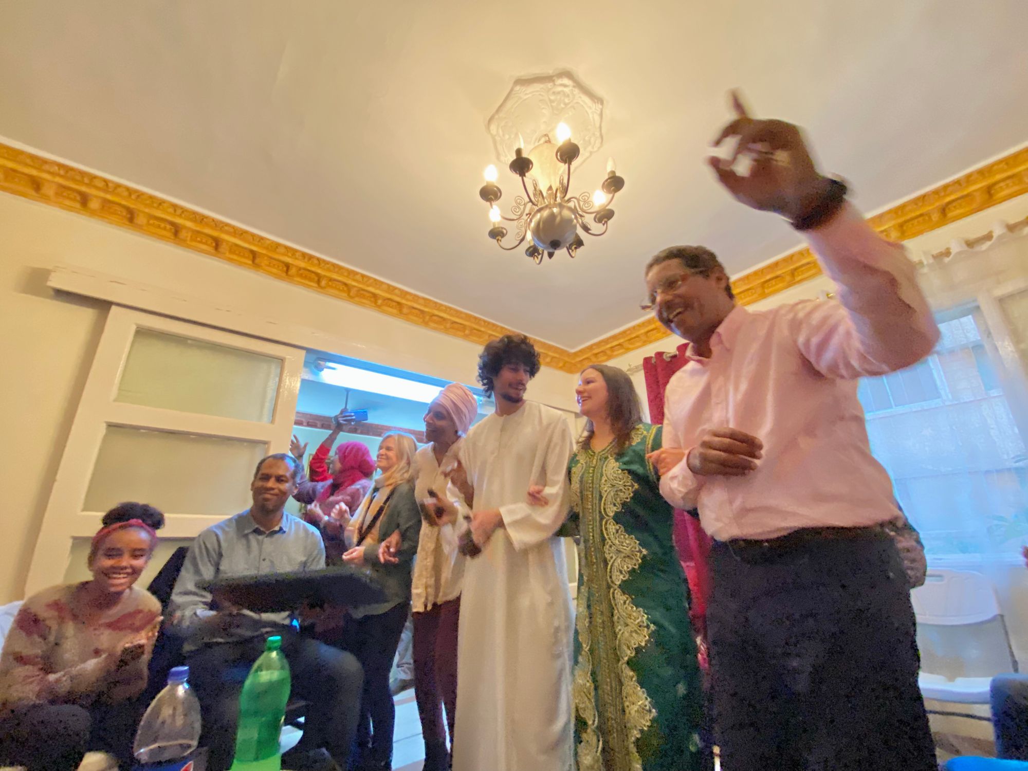 Shams and Sophia did not want an elaborate, multiple day traditional wedding celebration. They said "just a small gathering of family, nothing involved. Maybe an hour or two". Well, Nubians are not about small affairs especially when it comes to marriage. However, this time they were very restrained and only brought in a small troupe of Nubian singers and dancers. Also, family musician and renown Oud player, Karam Mourad, showed up and sang, including "Nabra" about daughter. Maybe a "Shams" song is next.