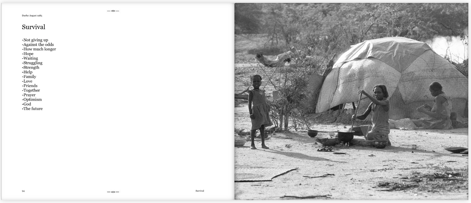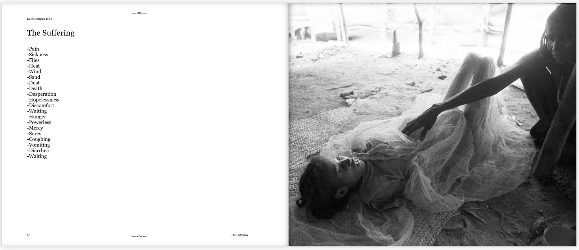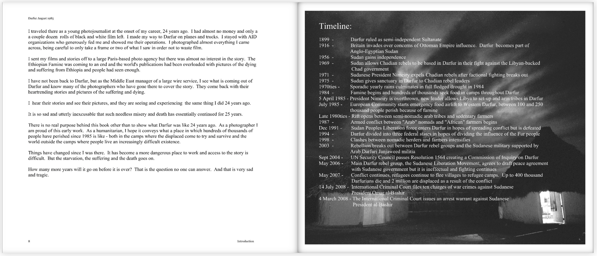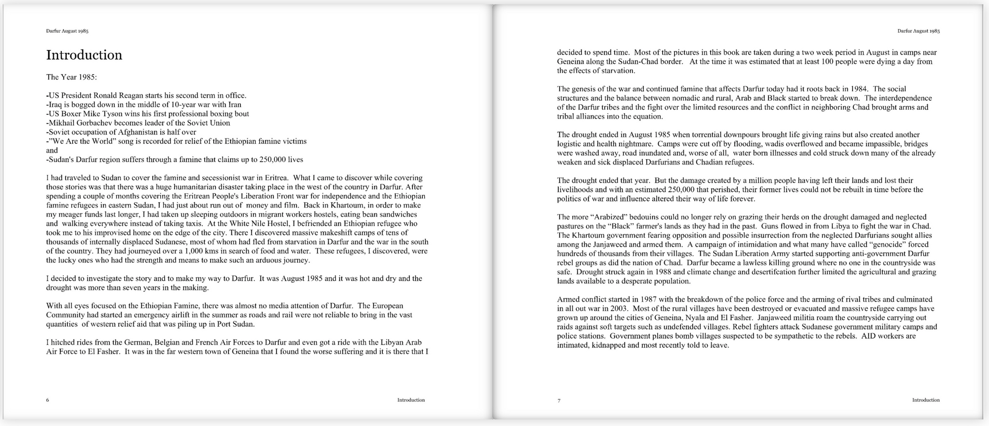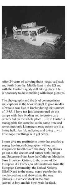 This is a book I did many years ago from a visit to Darfur, Sudan to cover the famine. It was before the outbreak of hostilities that infect Darfur to this day. However, the disruption drought and famine brought to Darfur, laid the groundwork of the war, atrocities and suffering that have yet to be resolved.