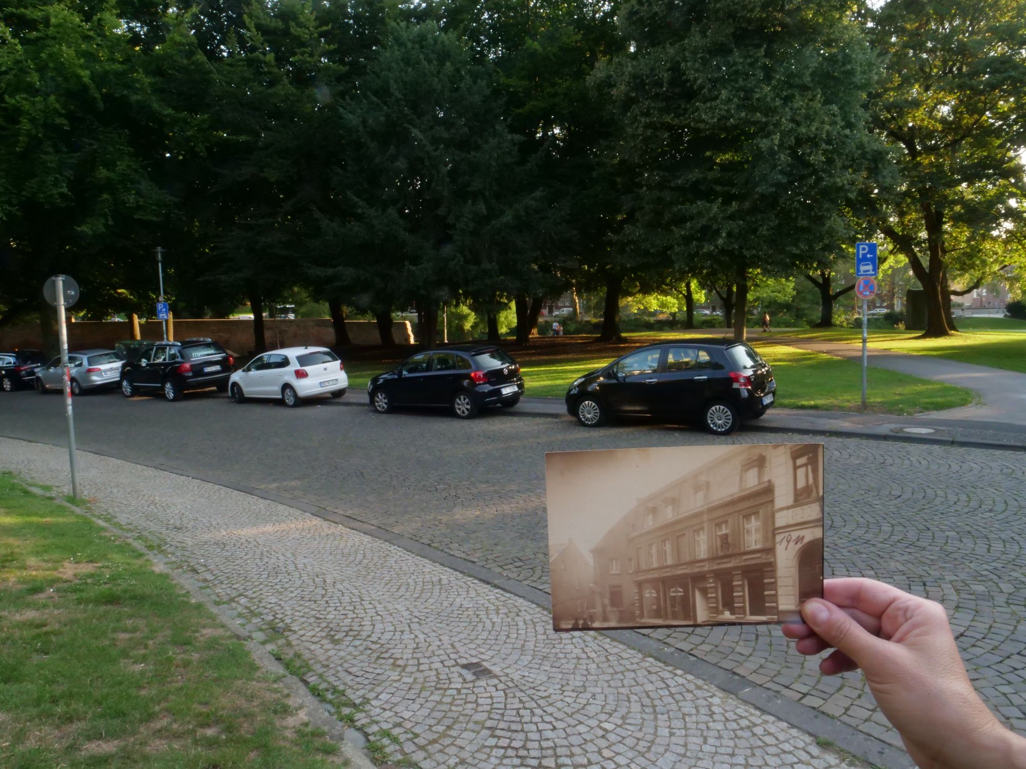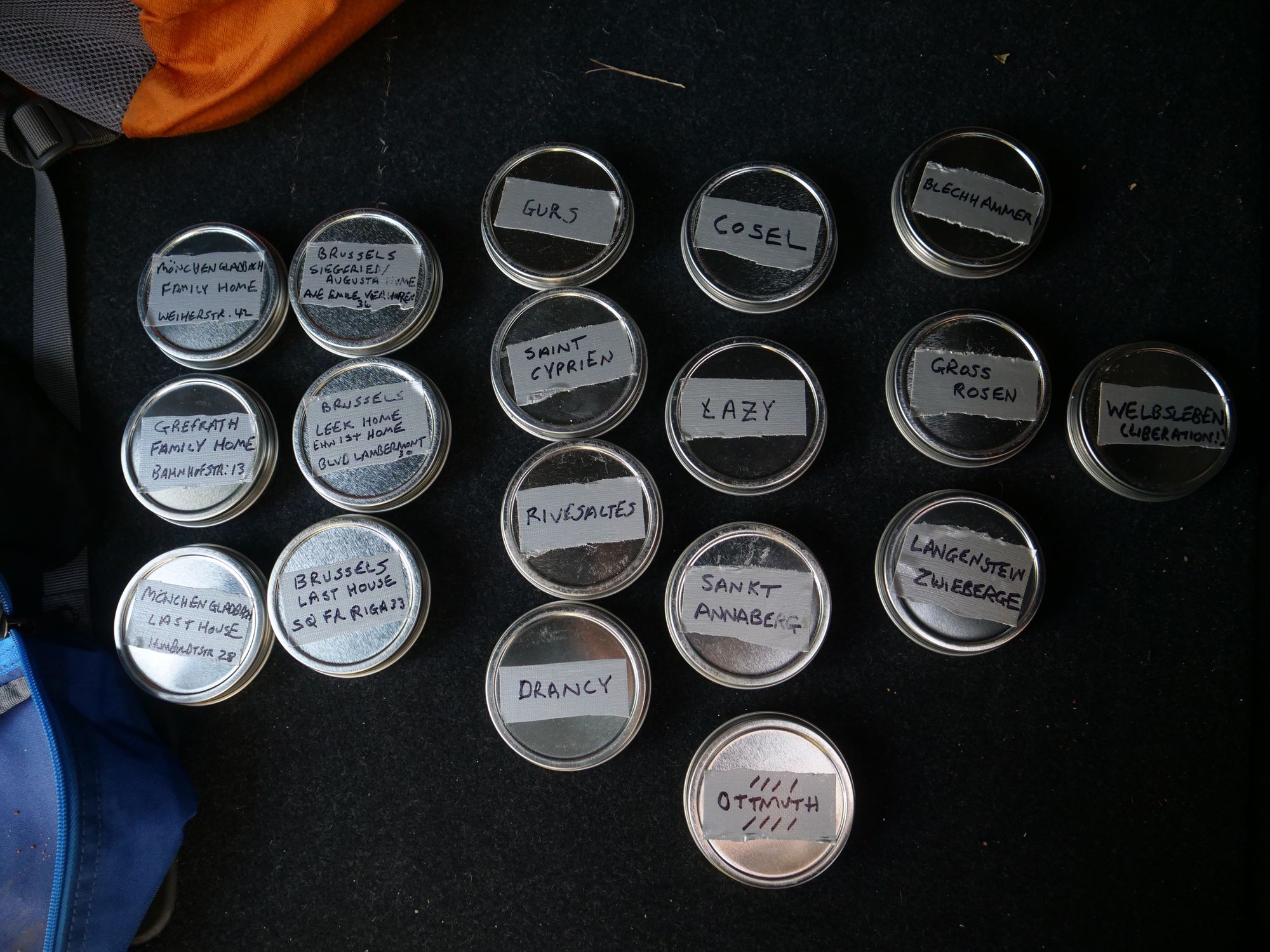 In Monchenglabach, we visited places where Al’s father had grown-up and Jewish sites including memorials to those who perished in the Holocaust represented by bronze sidewalk plaques and the synagogue which had been burned down on Kristalnacht. Al, as a means of preserving something of his father’s family’s past, gathered earth at significant sites where Eddie Willner lived, was imprisoned and escaped. A project called, “Gathering Earth”.