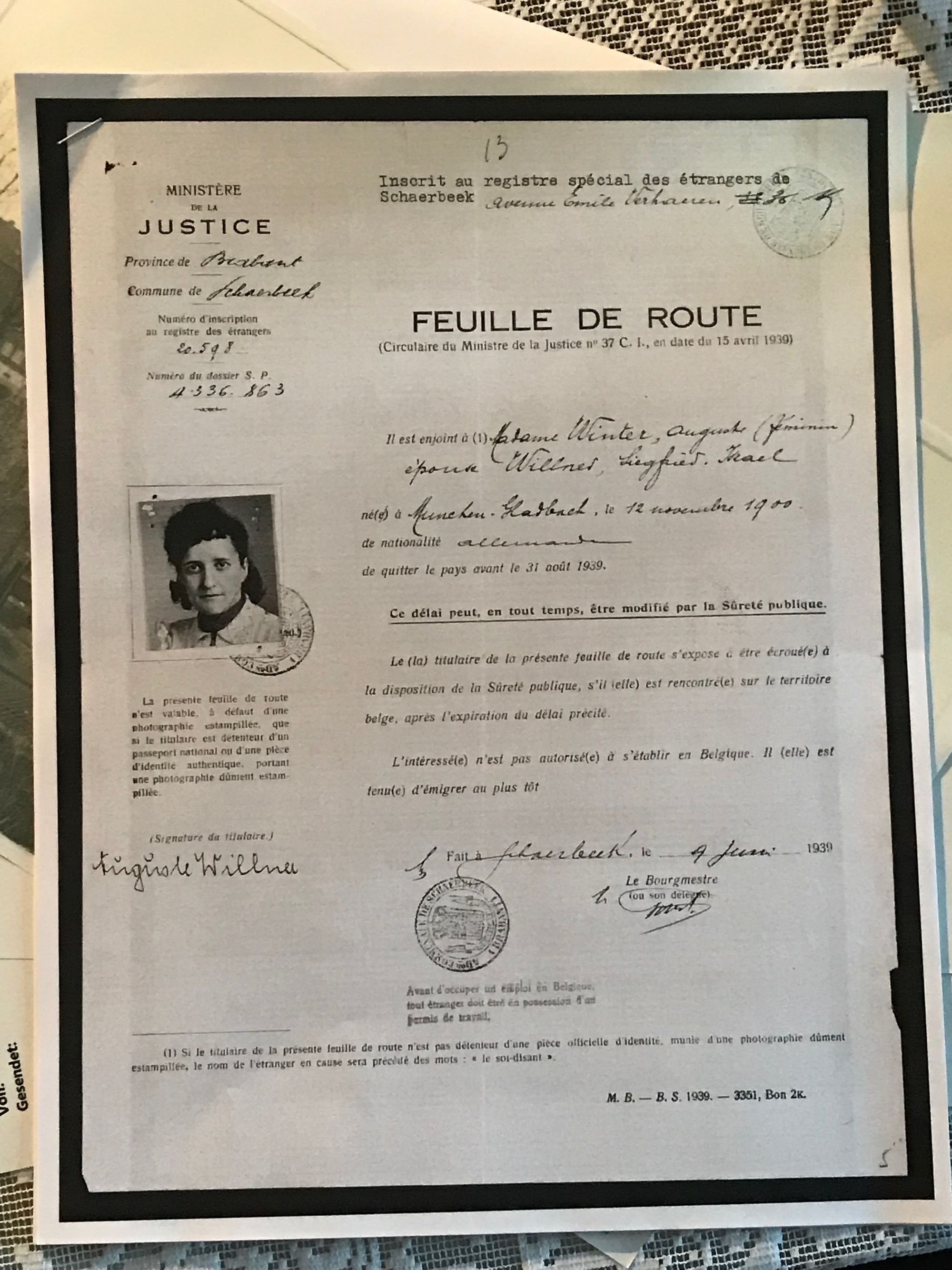 We proceeded to Wervik, Belgium where Eddie Willner and his mother Auguste who had gone in search of Siegfried were arrested and briefly imprisoned by Belgian authorities before also being handed over to the French.