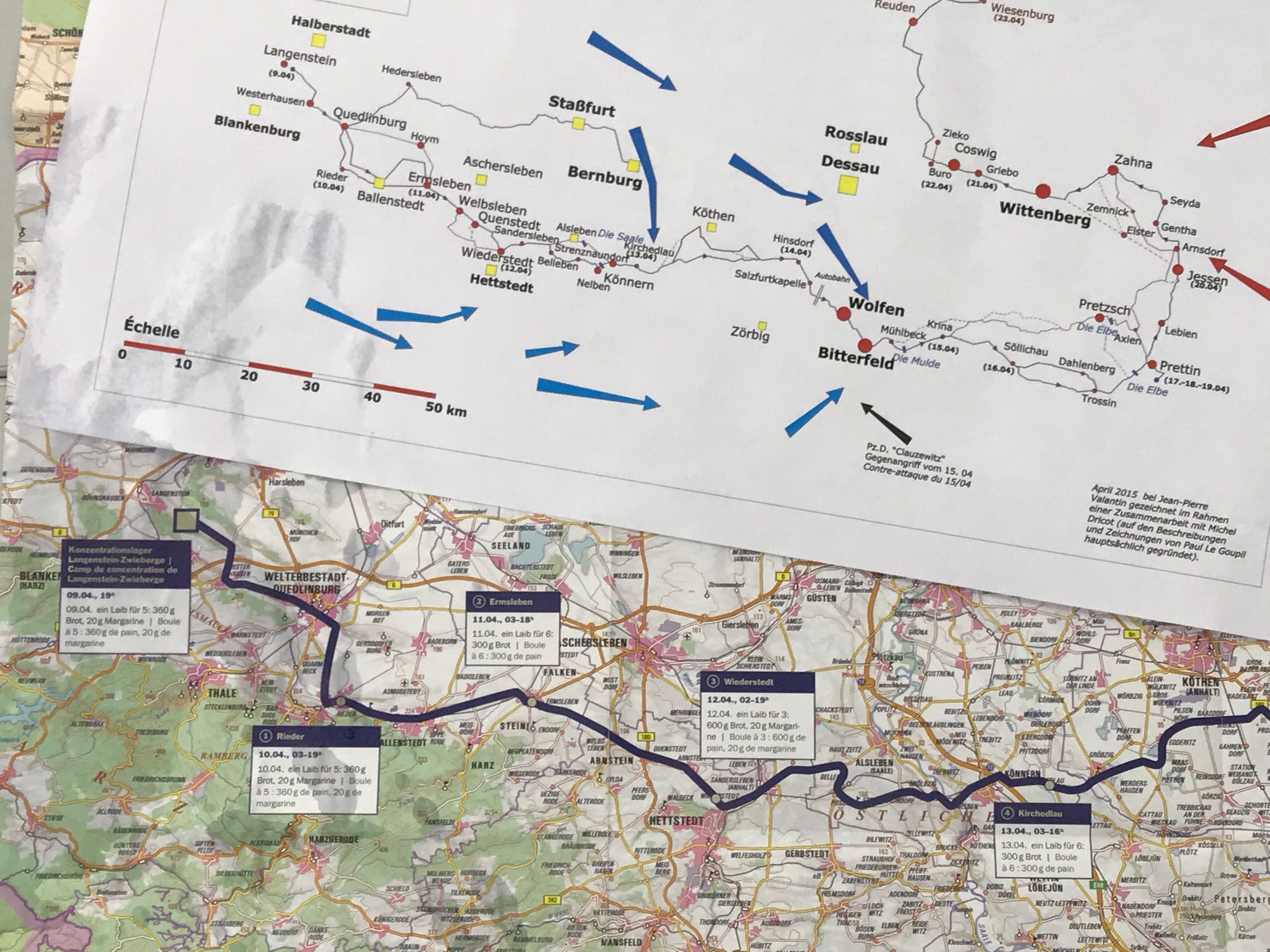 We consulted with Dr. Nicolas Bertrand from the Langenstein-Zwieberge Museum who had written a book about one of the last death marches of the crumbling Third Reich - the march from this camp. He, not only provided detailed information about the route of the march and the US Armies pincer movements into the Harz Mountains but also took us to the closed off tunnel complex Eddie Willner had labored in.