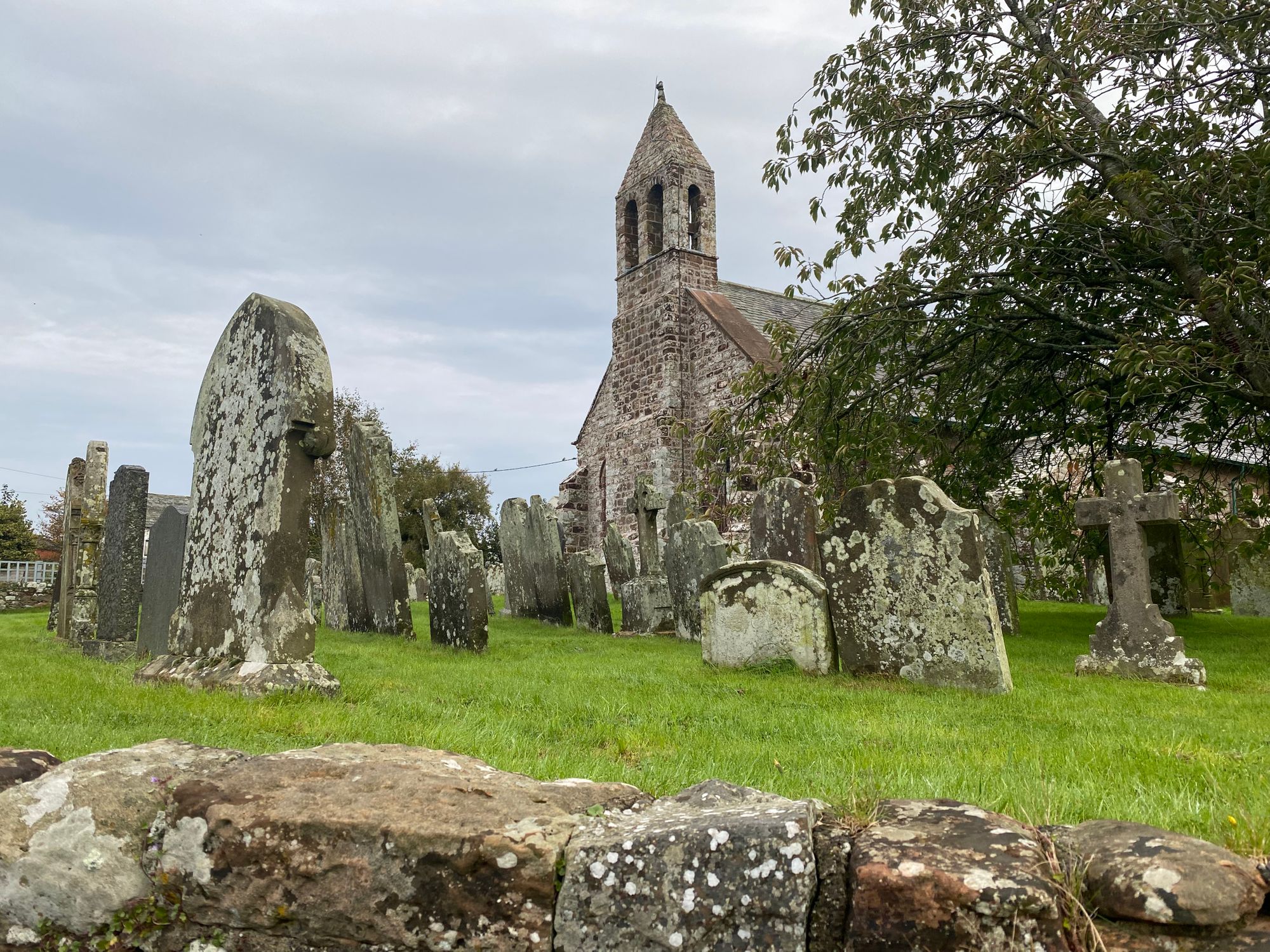 We had decided to walk the wall from west to east. The main reason for this was the prevailing winds blow from the west and so the winds are at your back and not in your face which can be difficult especially when it is raining. Al, Tom and I took a taxi early in the morning to Bowness-on-Solway. Rebecca would not join us and instead decided to check out the town of Carlisle. Today would be one of the longest walk days with no wall to be seen except in churches and homes which had repurposed the stones into their structures.