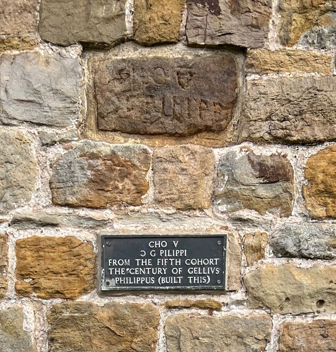 Day Three next to a barn where a Roman construction block reads the Fifth Cohort of Gellius Philippus (built this) | most likely taken from a milecastle structure