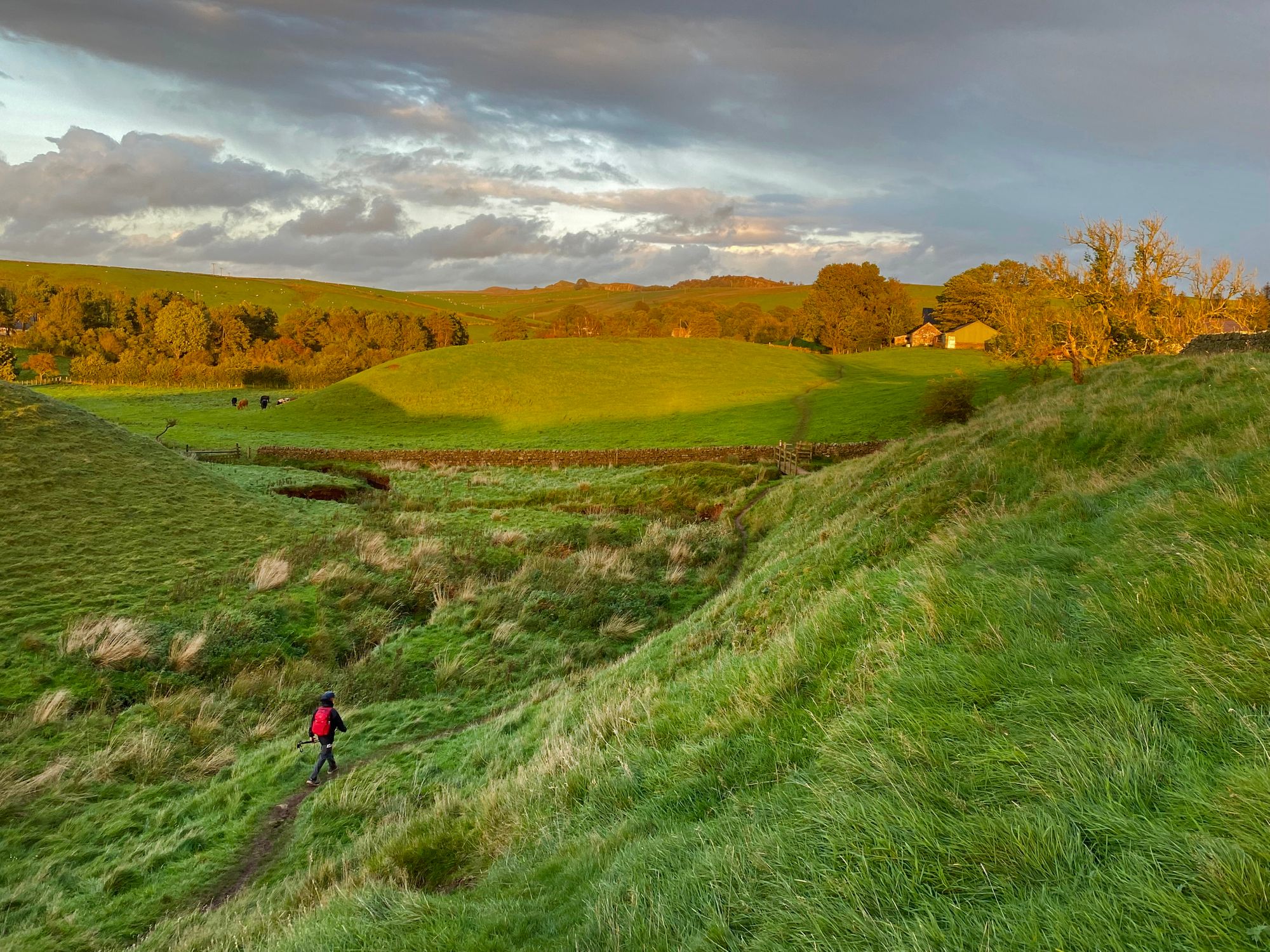 We were now following significant portions of the wall and vallums and the landscape was beautiful with rolling hills with copses of woods, creeks, farm houses and sweeping vistas of green and accumulating clouds.