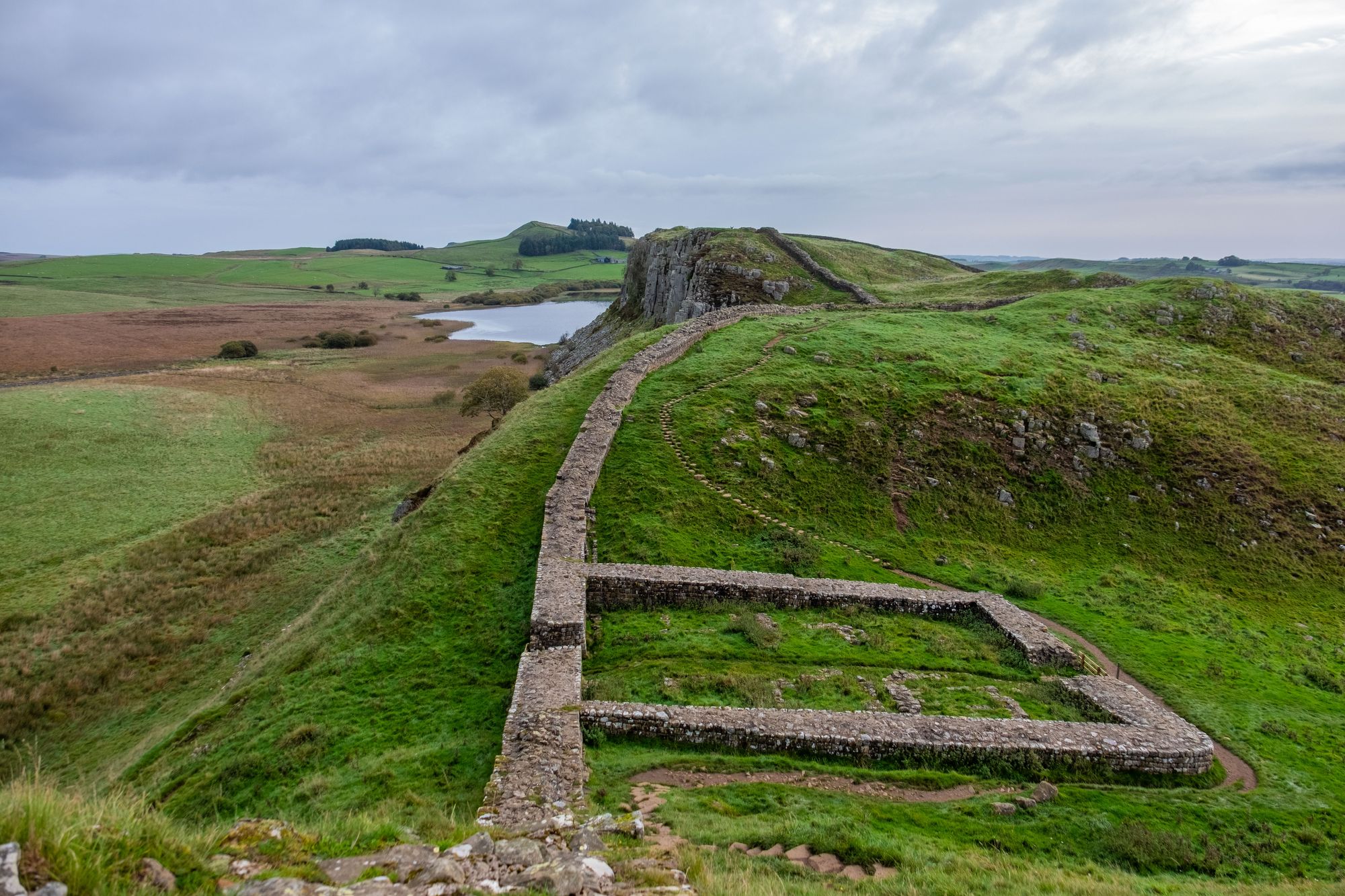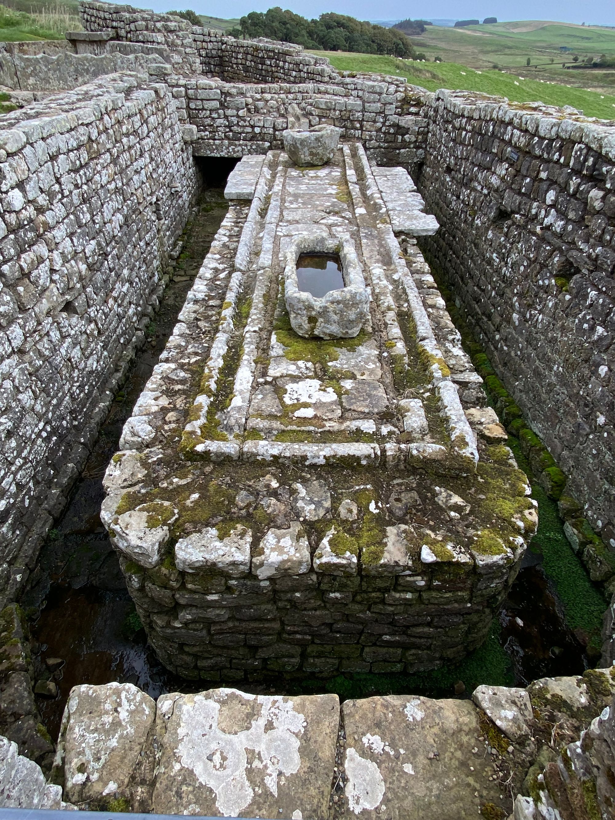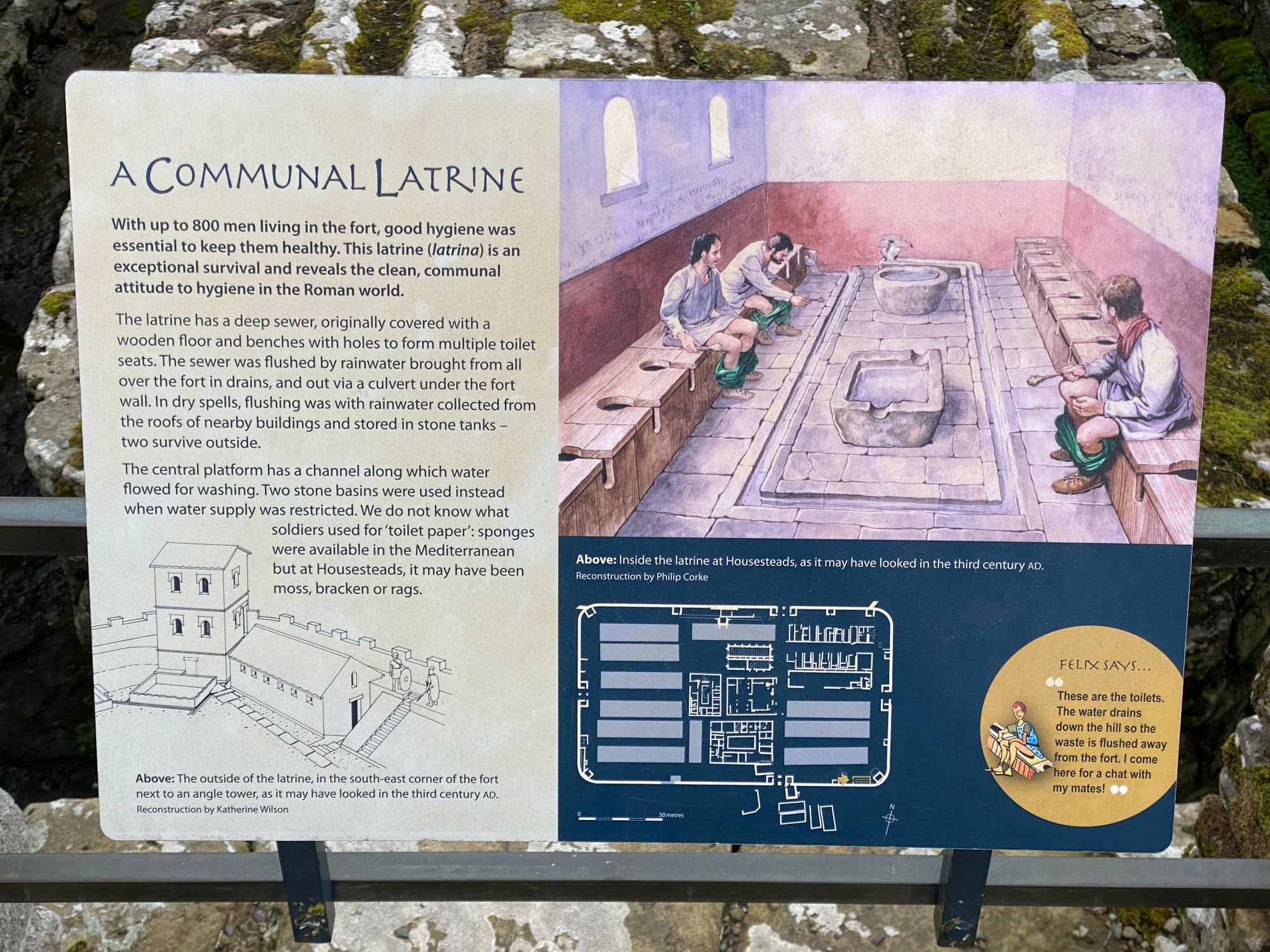 Housesteads Fort and wall leading up to it | communal latrine and information panel
