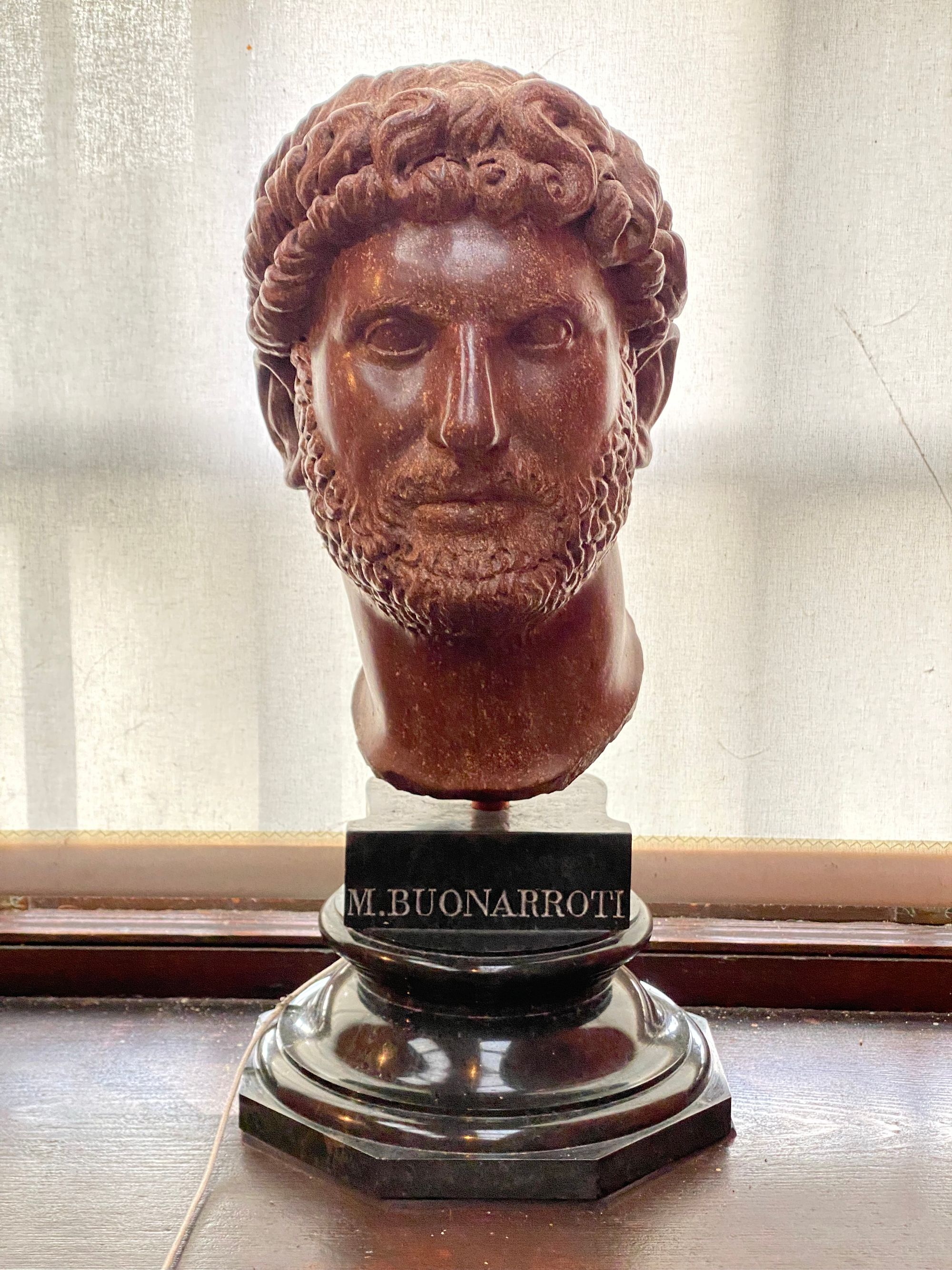 Hadrian was born in Italica, Spain (near present day Seville) in 76 AD and died in 138 AD at his villa in Tivoli, Italy. He had two adopted children. His reign was marked by consolidating power, putting down uprisings, eliminating rivals and securing the borders of the Roman Empire. He was married to a relative of his predecessor Emperor Trajan, and had a lover, Antinous, who drowned in the Nile River in Egypt. Hadrian's adopted second son, Antoninus Pius, became Emperor upon Hadrian's death at 62 from suspected coronary heart disease.