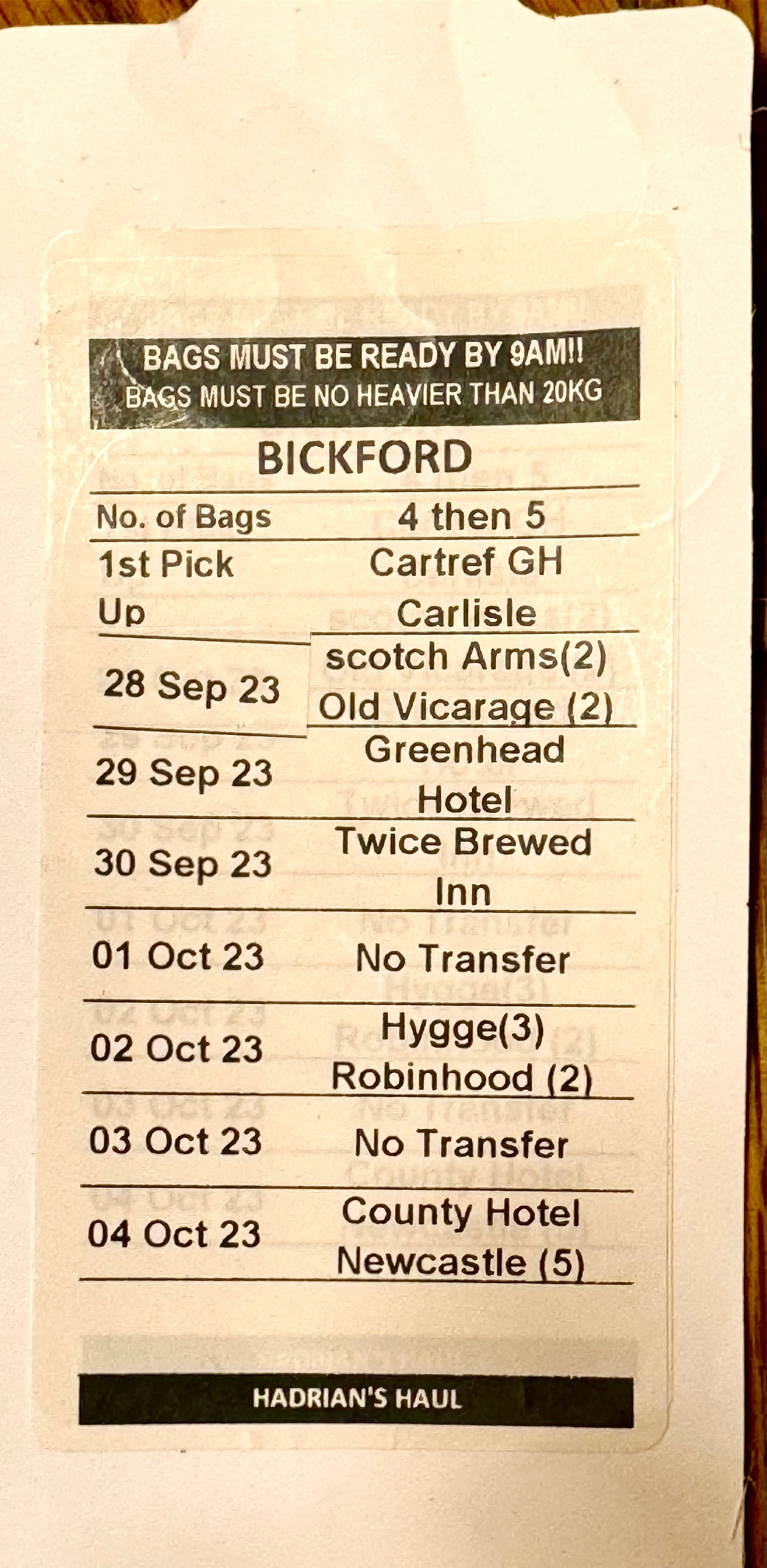 We had done zoom calls and a number of proposed rough itineraries had been exchanged and it was decided that we would walk at whatever pace was good, and each morning sort of figure out where we hoped to get to that day. A pretty good itinerary had been decided upon when Tom, who was delegated to research luggage transportation services, had been advised that each overnight lodging needed to be specified prior to booking the service.