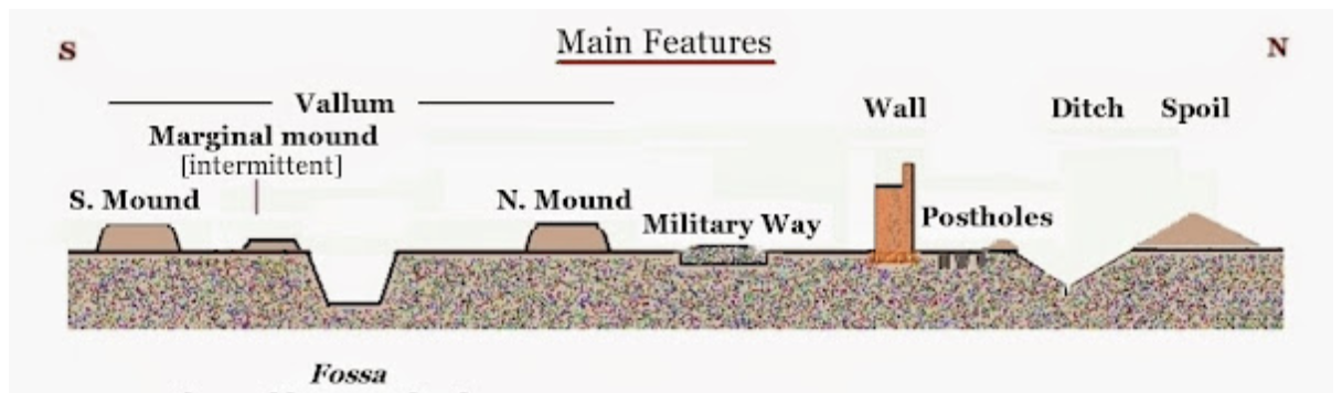 It was started in 122 AD and took six years to build. It was an impressive military structure that involved not only a 1o foot wide and 2o foot high wall with remparts, but also forts, towers, turrets and milecastles with berms and large ditches called vallums on both the northern and southern sides of the wall. It stretched 84 miles from the Irish Sea inlet to the North Sea and was manned by two or three Roman legions and their auxilaries - approximately 15,000 soldiers and cavalry.