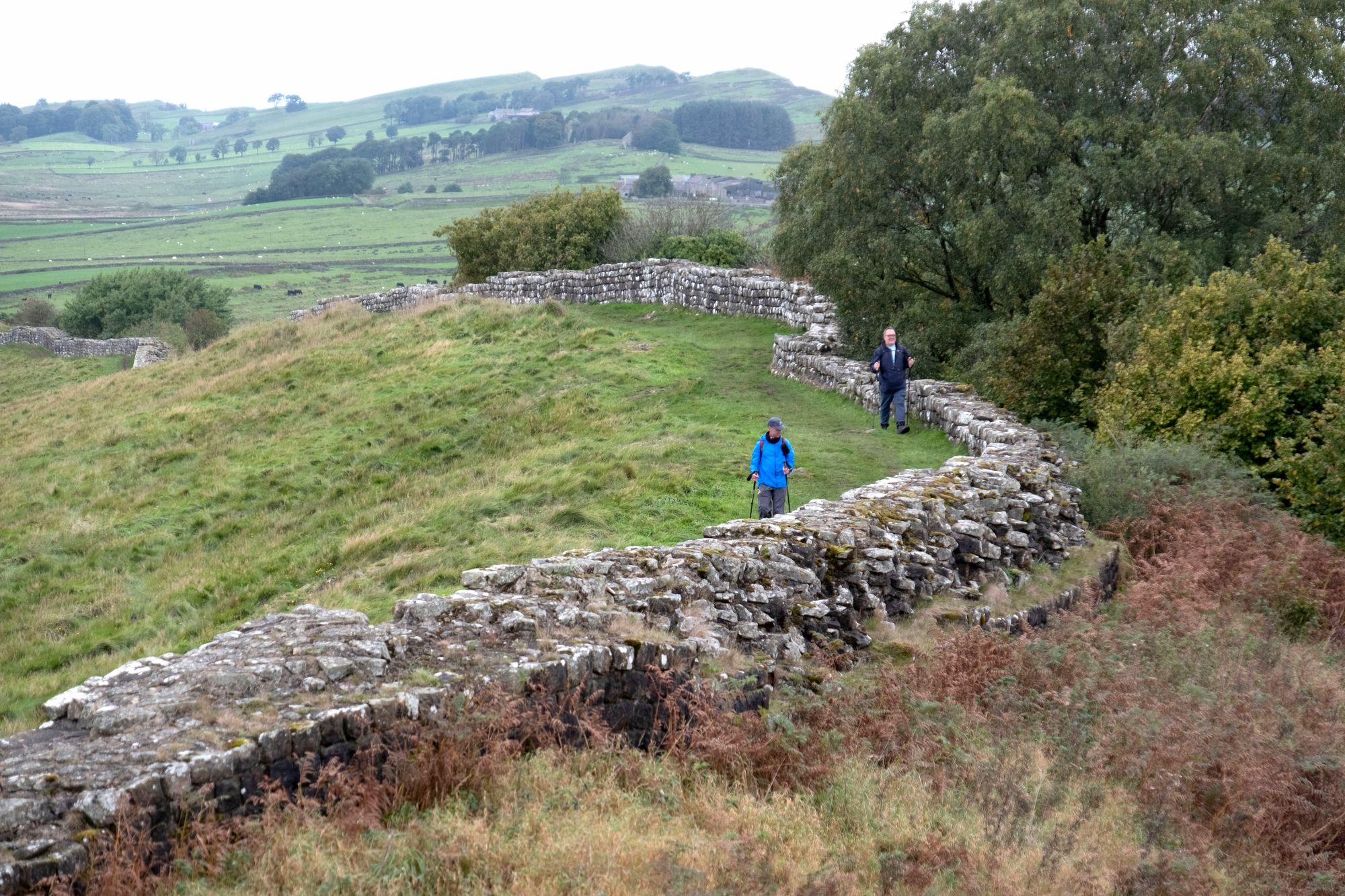 Housesteads Crags | Al and Tom walk atop a portion of the wall that is allowed after it was rebuilt and reinforced after being damaged by a group of 800 bankers at a conference outing in 2004