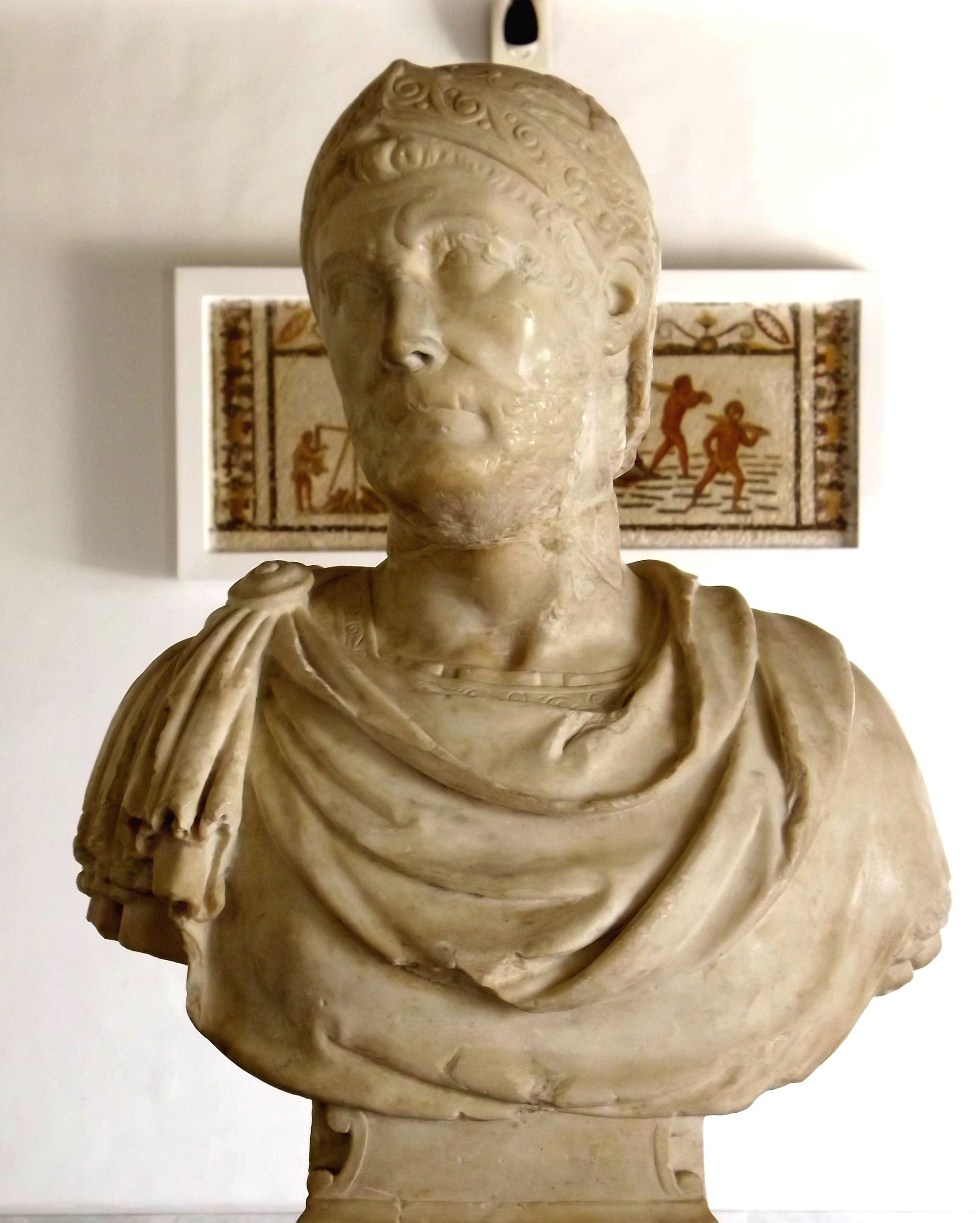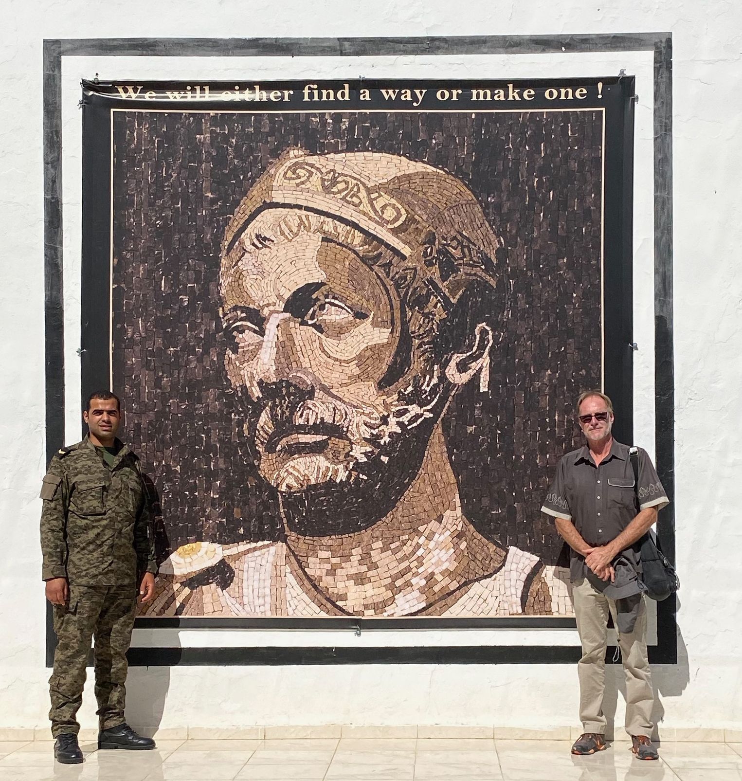 Marble bust | Museo Nazionale | Naples | Me and Tunisian Army PAO pose next to Hannibal mosaic | National Military Museum | Tunis | Photo by Al Willner