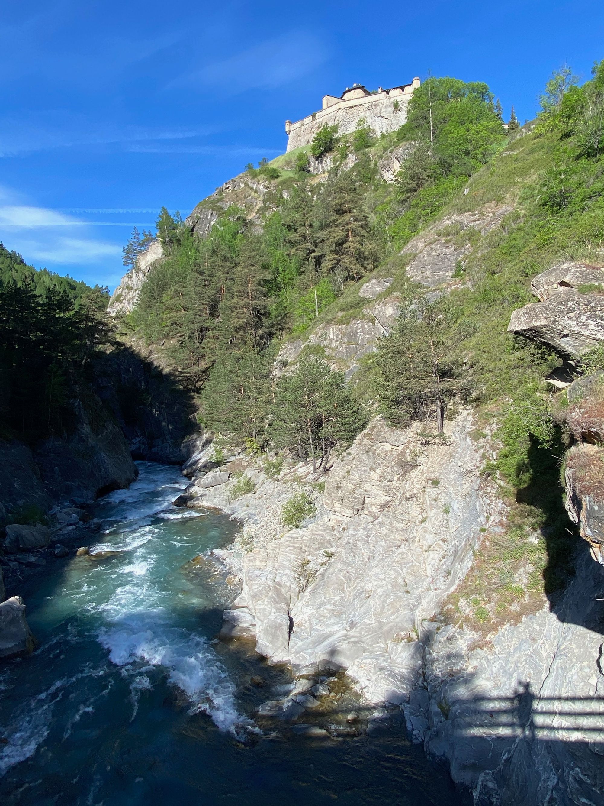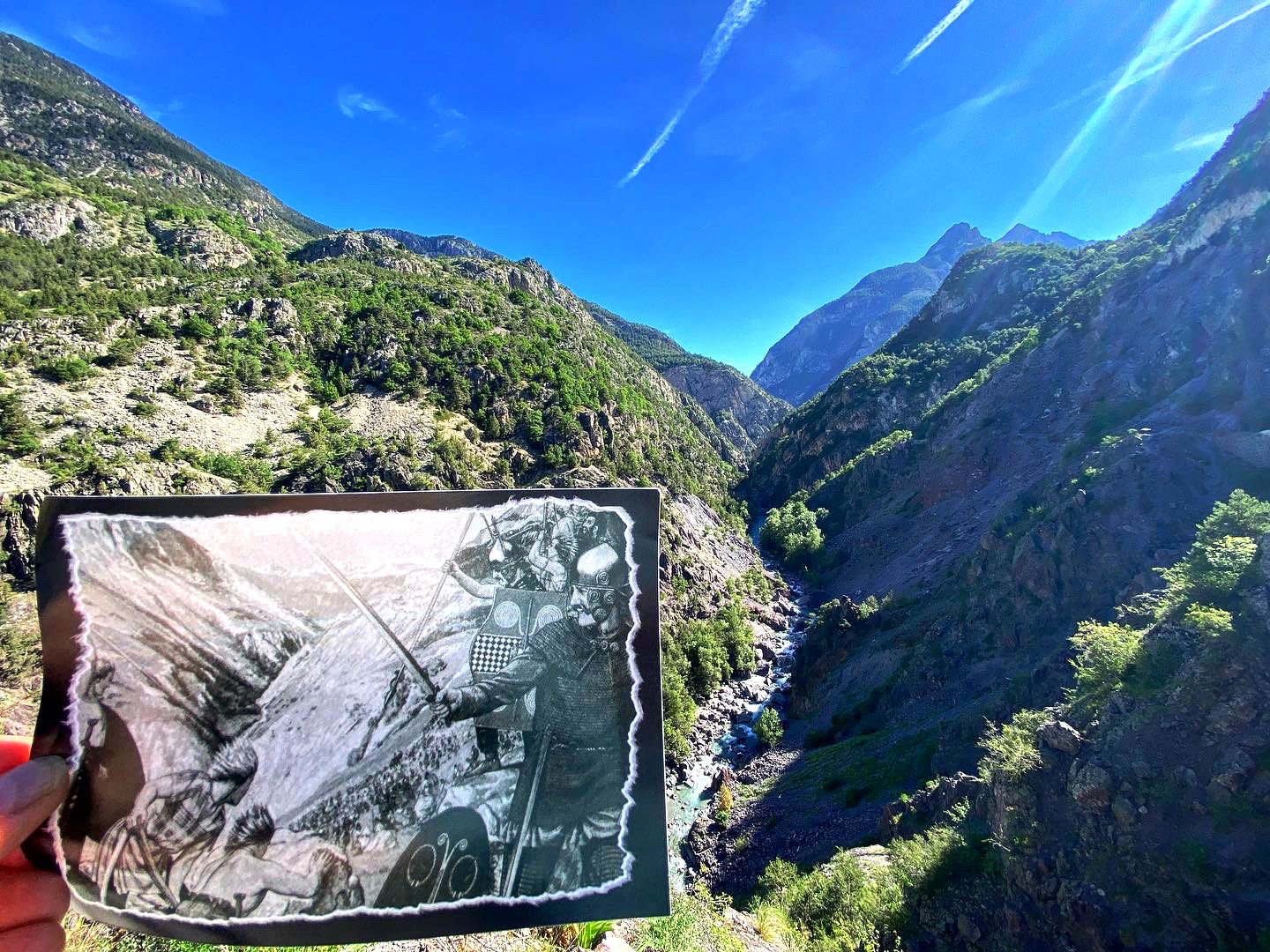 "We stopped briefly at one of the only pull outs on a road carved into the rock and built adjacent to the fast flowing Drome River. It wasn't hard to imagine how horrible it was to be ambushed in such a place with nowhere to escape to. Depictions tell how soldiers and camp followers tried to hug the rock walls to try and avoid the boulders and stones being pelted down on them. The carnage was so bad that the river ran red." from my journal 05-26-22