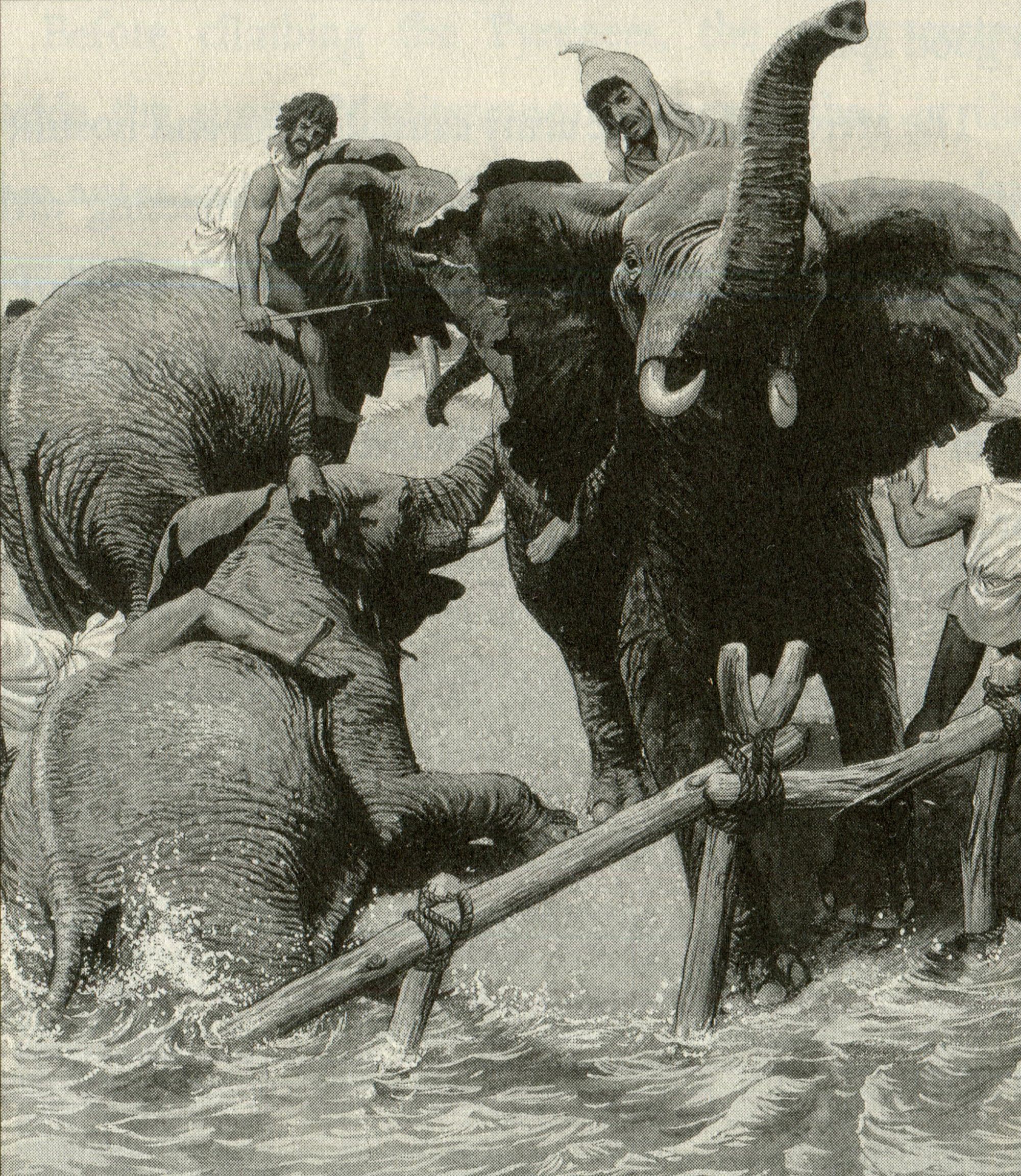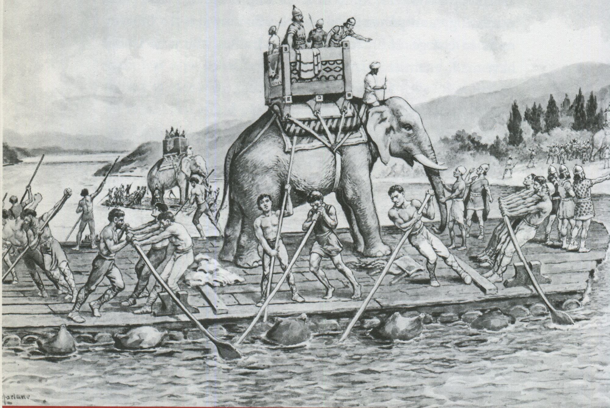 Hannibal's war elephants ferried across the Rhone River | J. Macfarlane | 1754