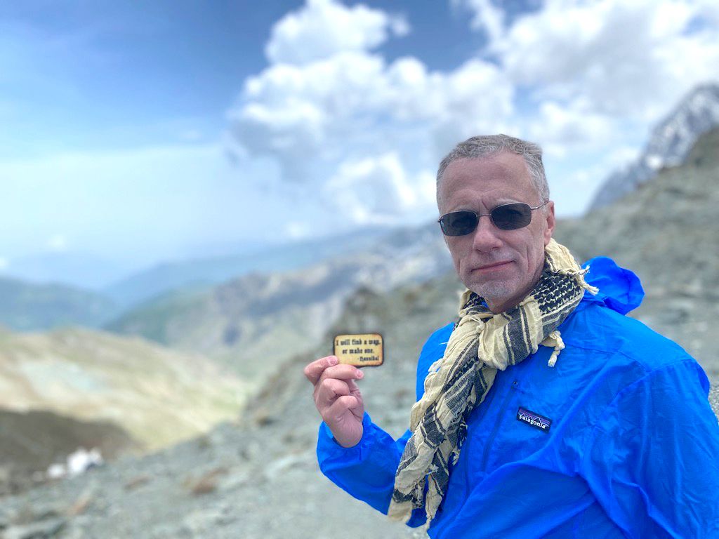 "The trail was clean, a marker which I took to be the summit was visible and I was energized. Finally, the objective of so much research, reading and effort was within sight. I thought of Hannibal and how after losing something like 40,000 soldiers and an incredible epic six month odyssey of fighting, negotiating, forging, weathering all sorts of obstacles, he was within sight of Italy and the hated Roman lands. Though tired and still out of breath, I turned on the video and recorded my ascent to the summit.