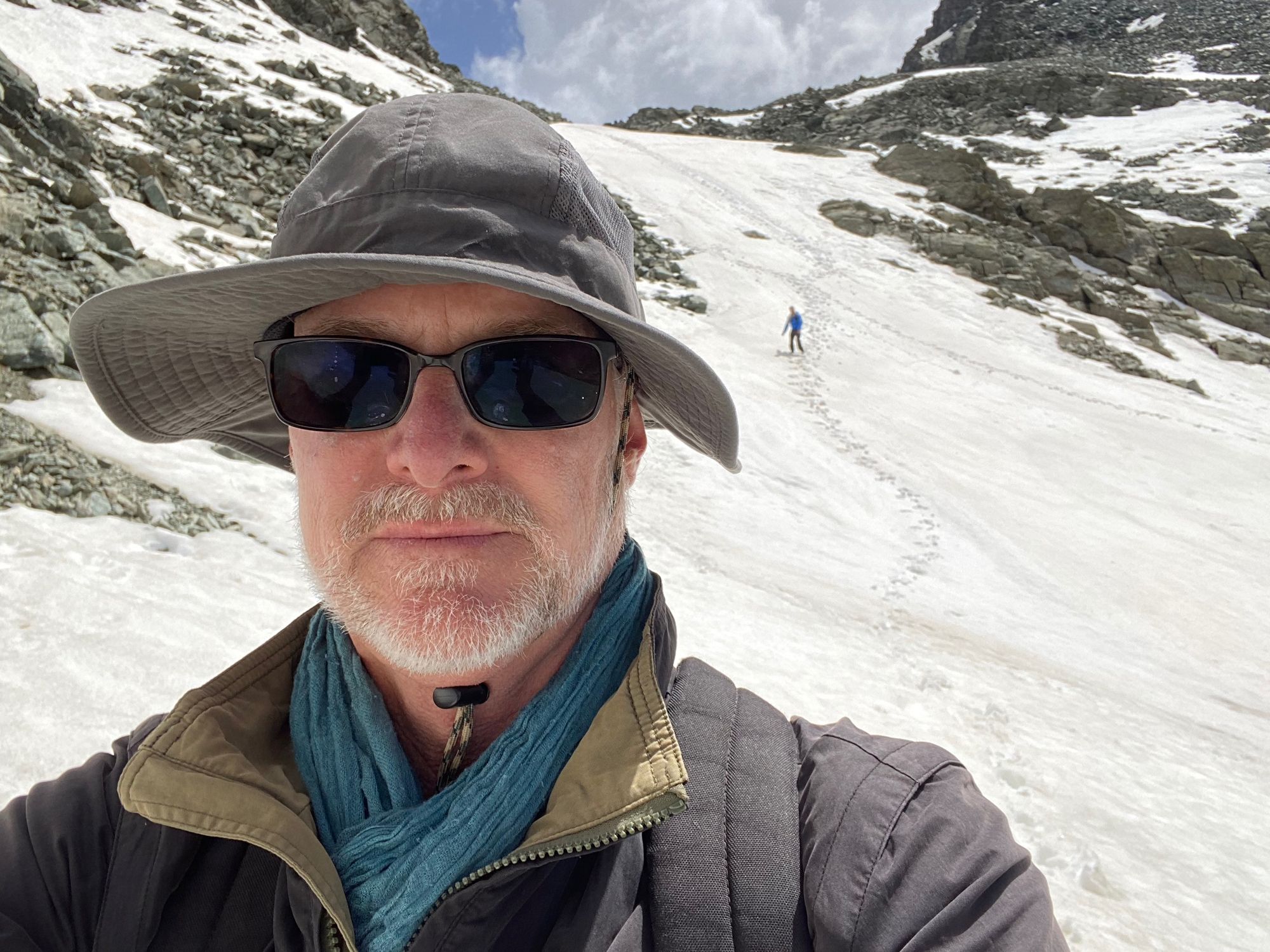 5.8 miles 1:20pm | Al negotiates a snow and rock field