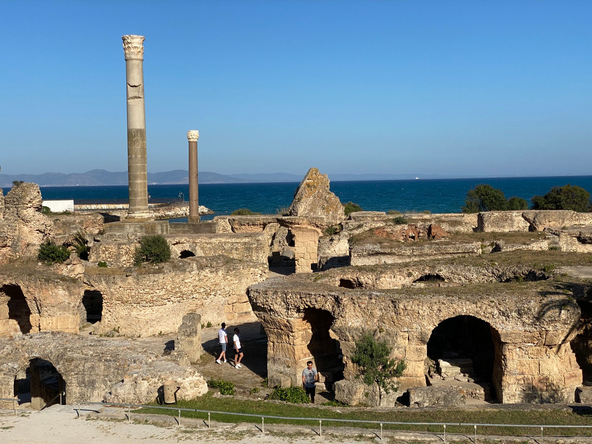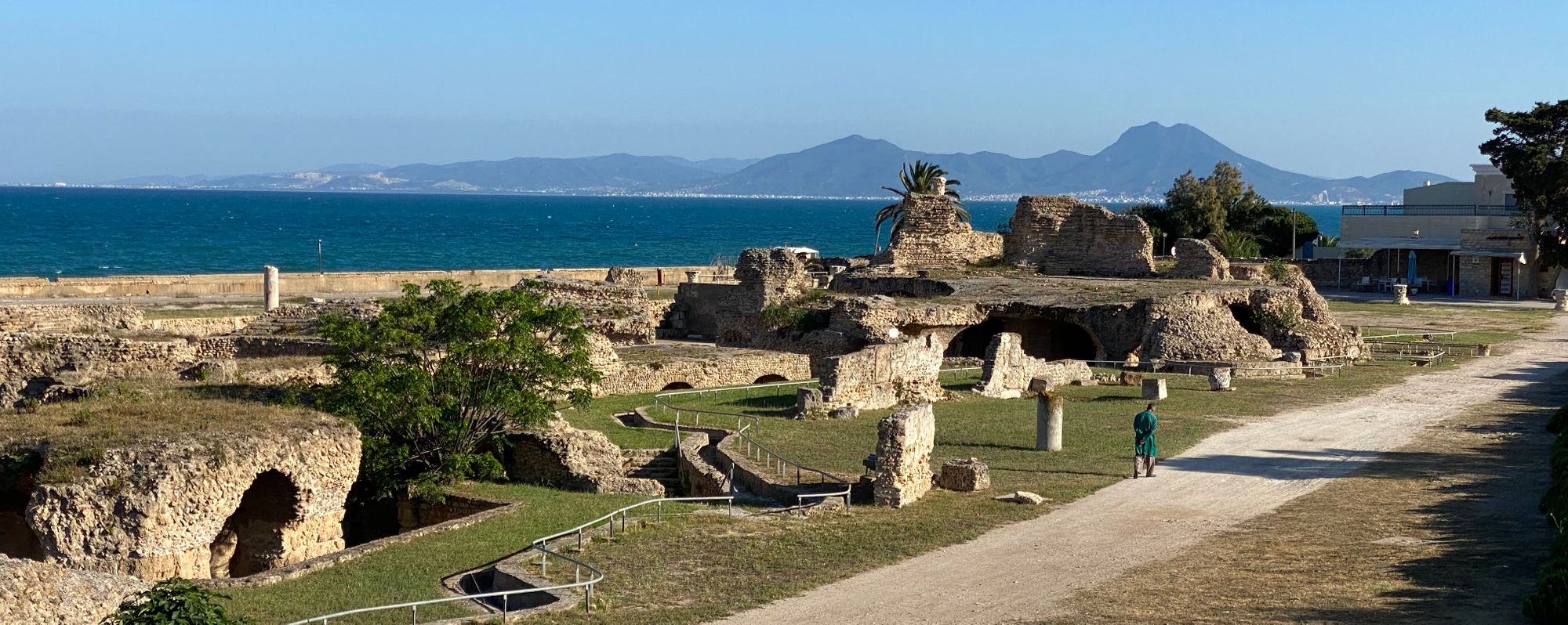 Ancient Carthage | underground Chapel of Asterius | Salammbo Tophet and steles | fishing boats and picnickers at ancient circular military port - background | Punic tombs carved into rock