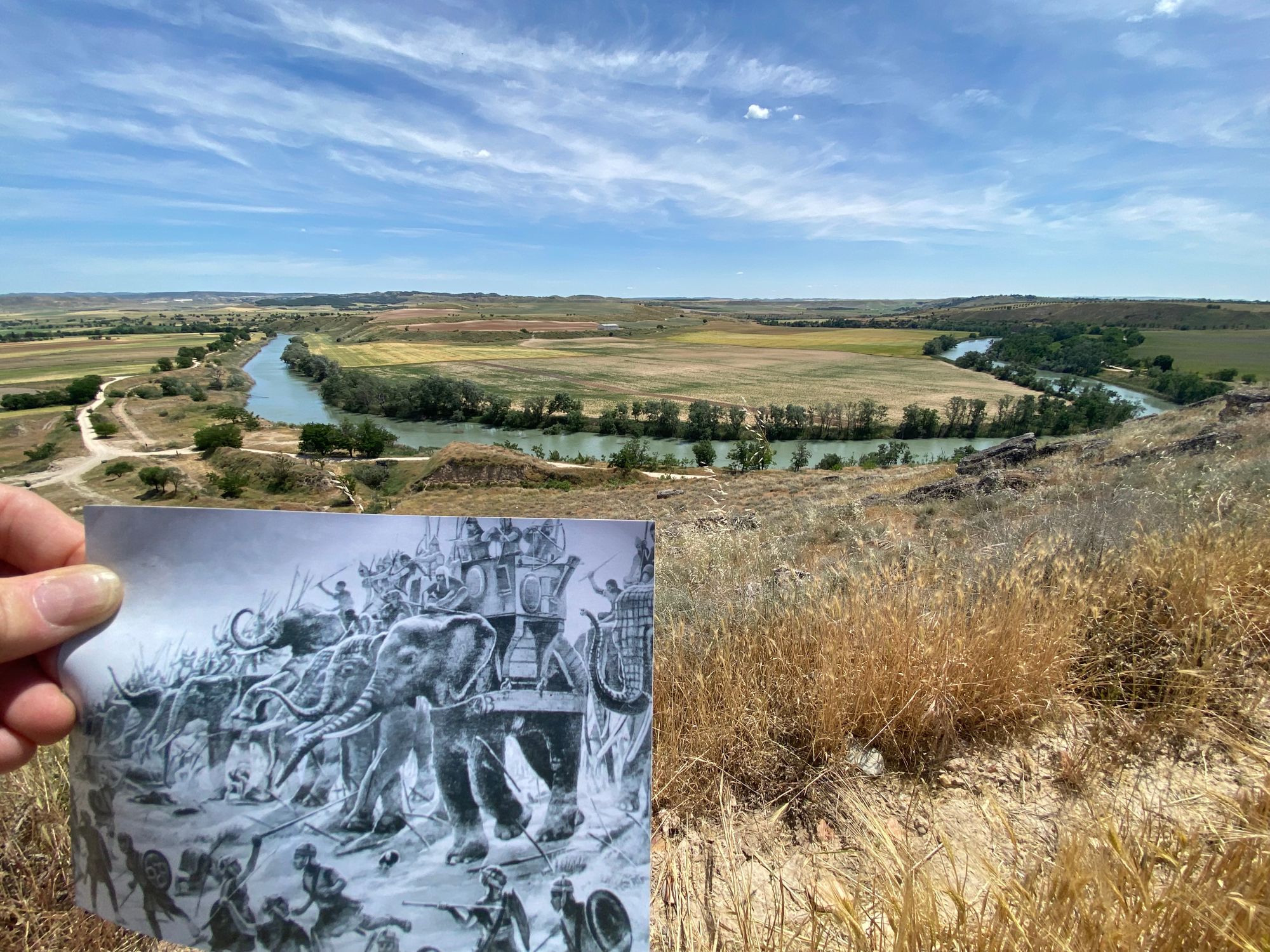 Tagus River Battlefield site 2022 | Hannibal on the far side | Spanish tribal coalition on near side | Henri-Paul Motte 1890