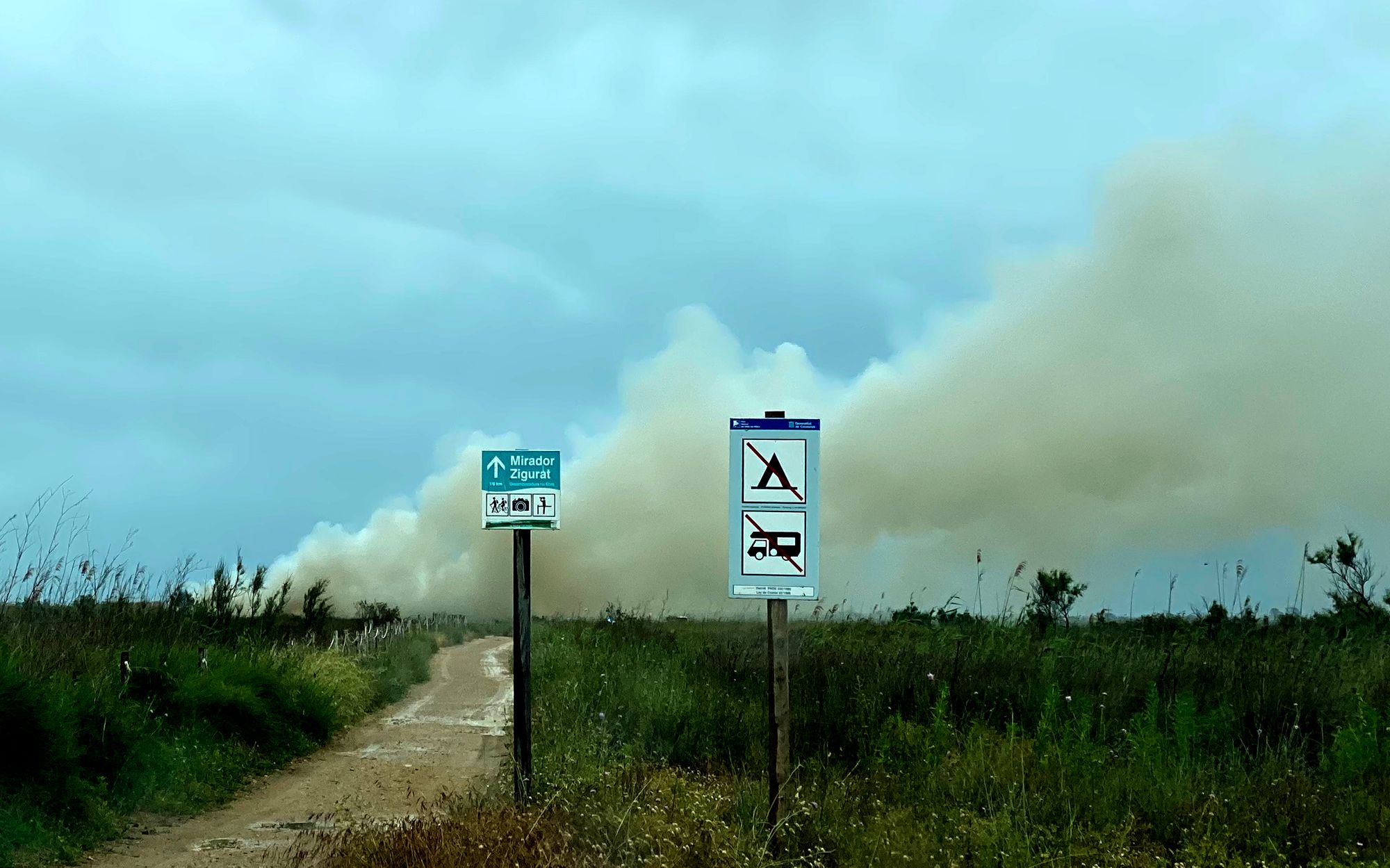 Me shooting a panorama | lightening strike fire | Ebro Delta National Park | Spain