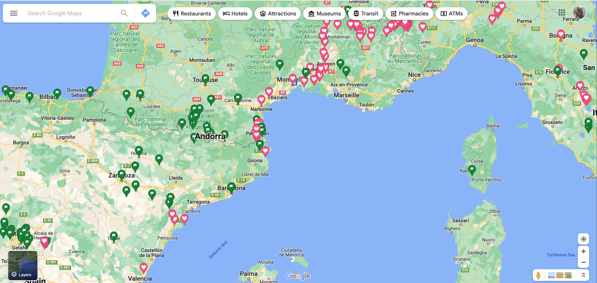 Al had rented the car and would be the driver for the Hannibal Trail. Each day we had a significant site for the story of Hannibal to visit, explore and document. However, as we set out each day with Al at the wheel, I would check other points of interest I had marked on Google Maps. Most had to do with Hannibal and they were marked with a heart. Others including Spanish Civil War points of interest were marked with flags.
