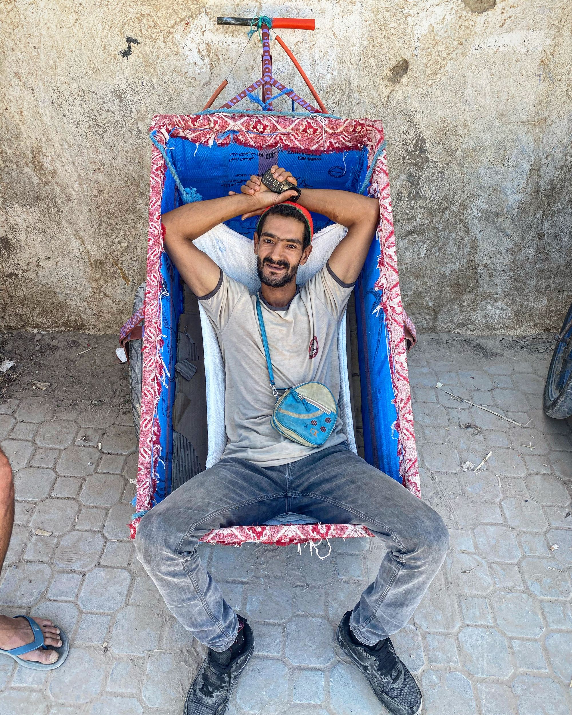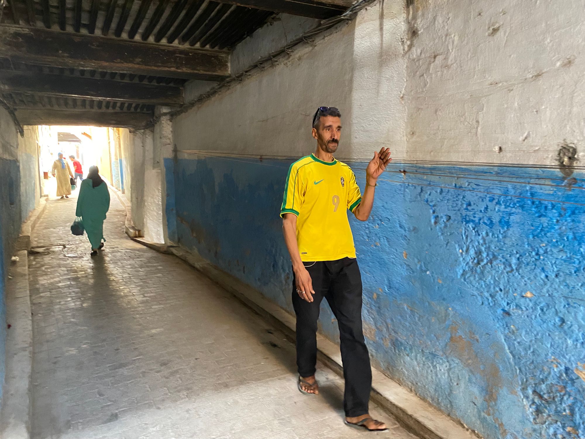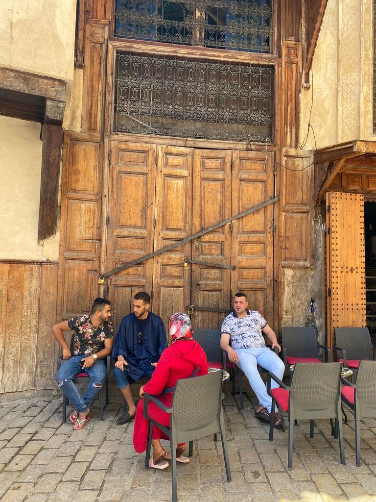mobile pastry man | Ilham - Salon de The | babouche salesman | silk thread maker | Ayoub - dried fruit shop keeper | residents outside mosque entrance | riad porter | baker