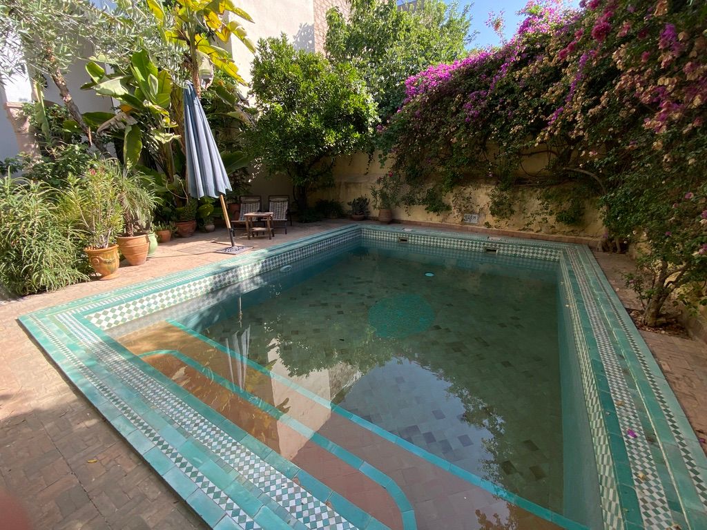 my African themed room | my bathroom - up a steep flight of tiled steps | breakfast in the garden | the pool | drawing by French artist Louis Malteste, who was known for his depictions of spanking | rooftop patio | door to my room |