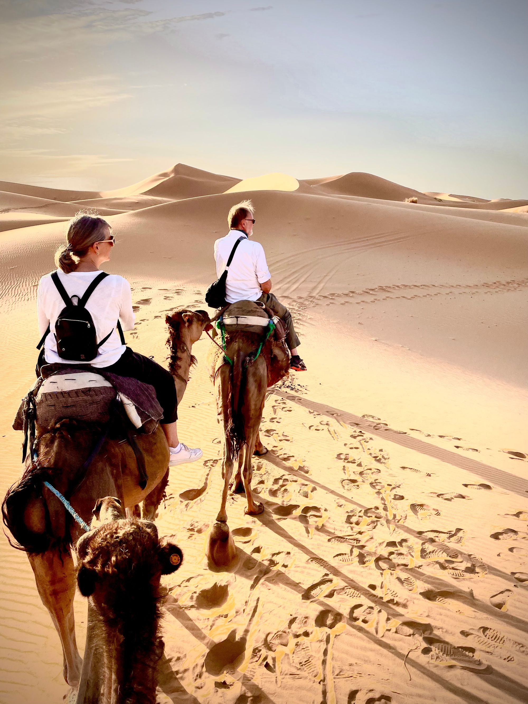 Hotel Kanz Erremal | camels into the dunes | trinket salesman | 86 degrees at 10:47pm | Youssef, camel guide |