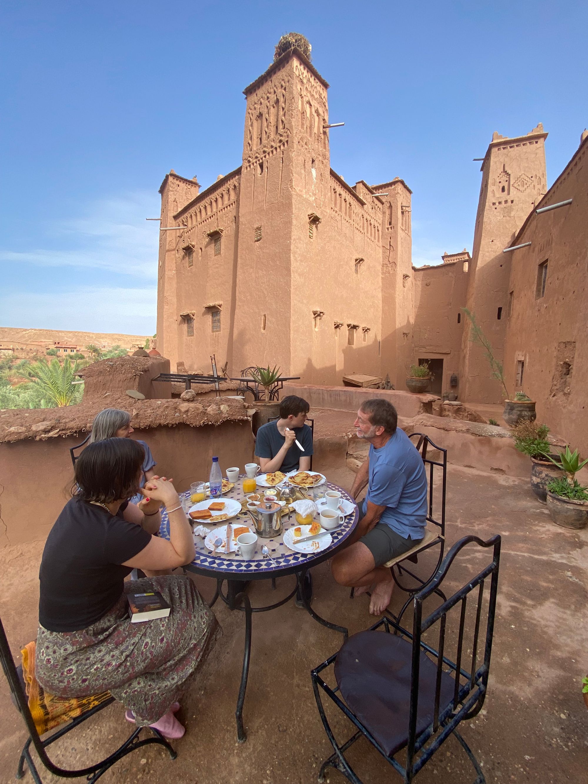 Ait Benhaddou where movies such as Gladiator were filmed | kids on their smartphones | breakfast | my sister's room | the flooded wadi that was dry the day before