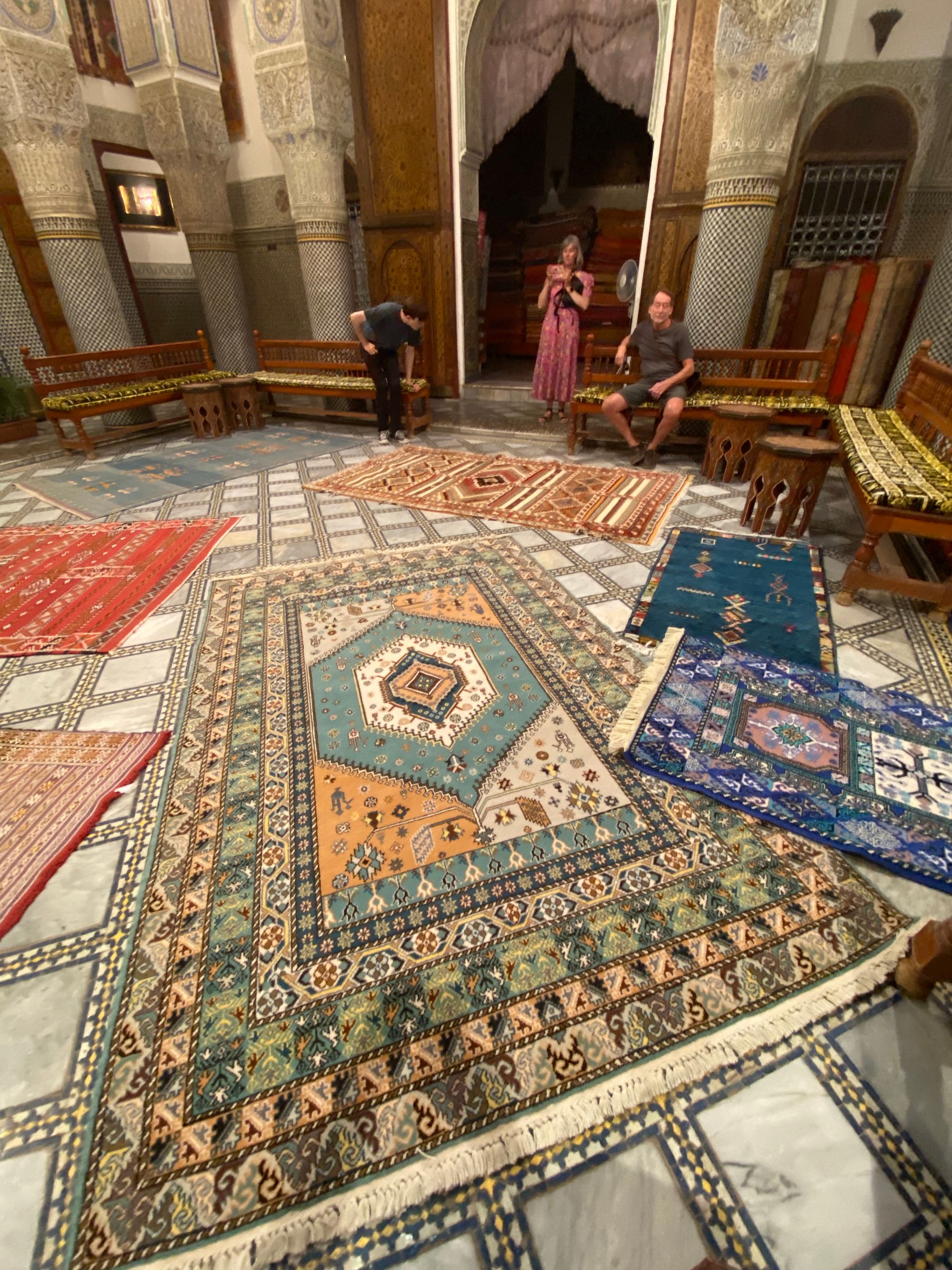 Lots of exploring and a personal guide that Jeff knew took us on a highlite tour of the ancient kasbah. It, of course, included stops at shops .... selling babouches, kaftans, leather products, and, of course, rugs.