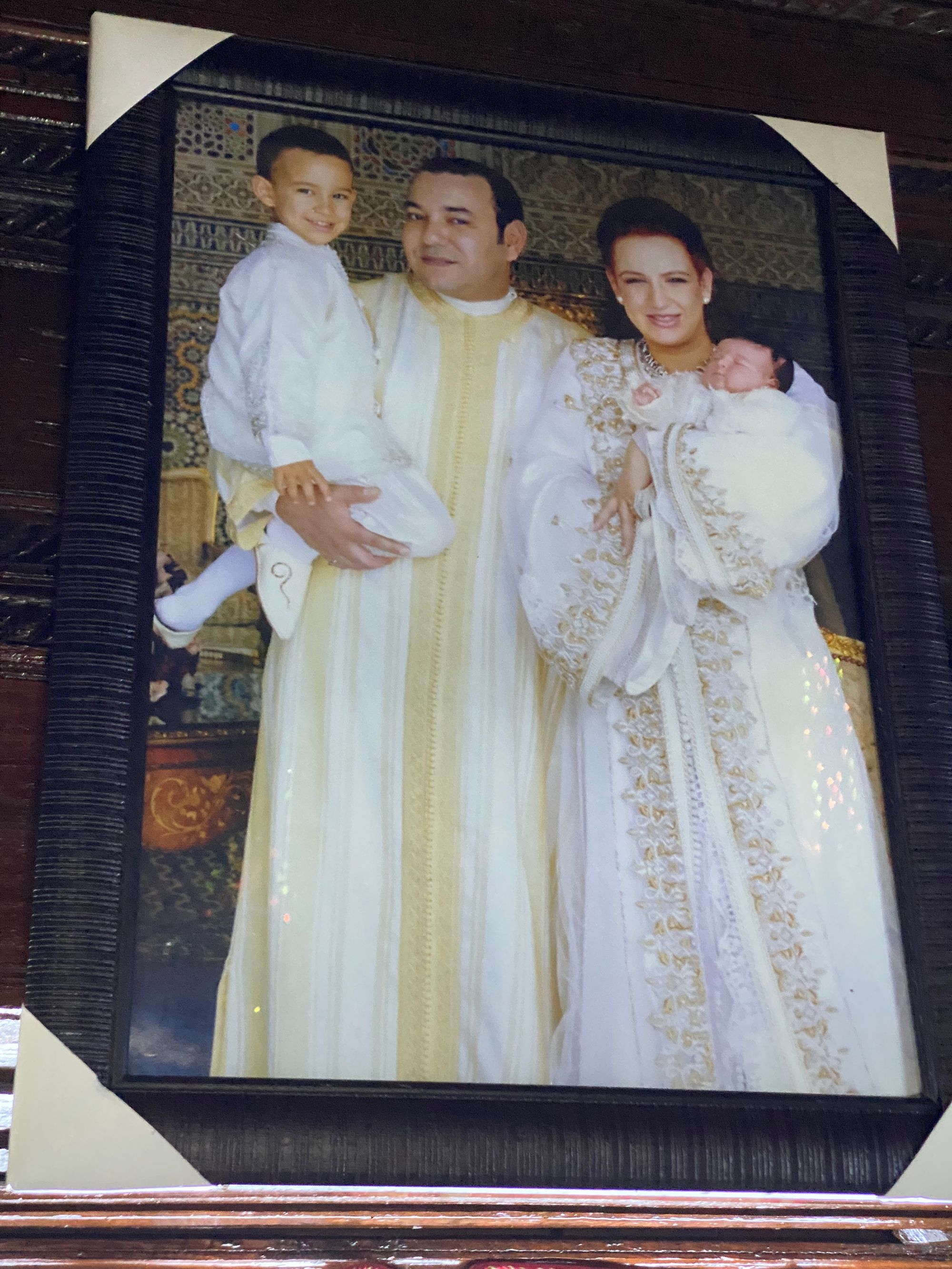 Official portrait | outside shops in Tangier | posing with AST school mates at the entrance of a night club | his father King Hassan II who was king when I lived in Morocco | with his son, Moulay Hassan, crown prince, at the Cafe Clock | Fez | with his wife, Princess Lalla Salma and their children