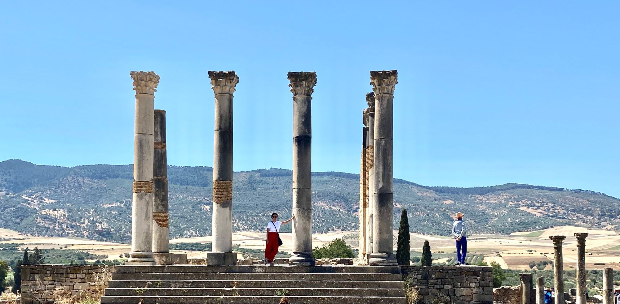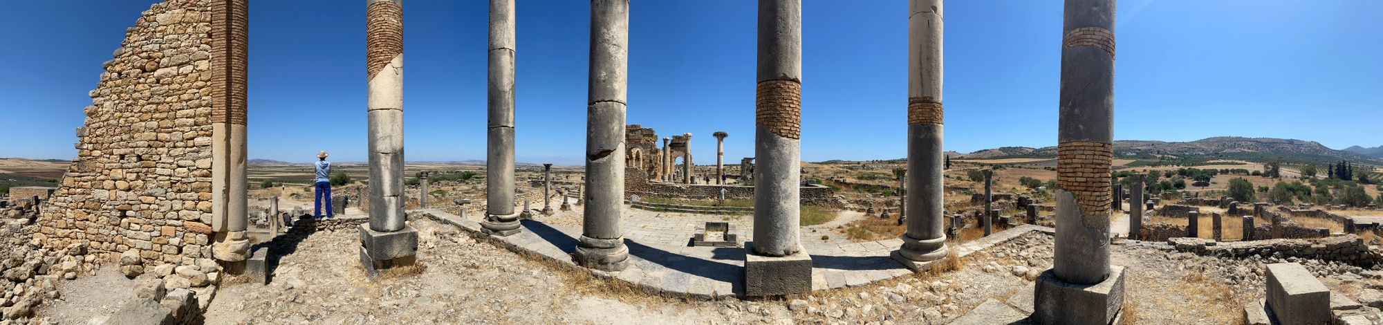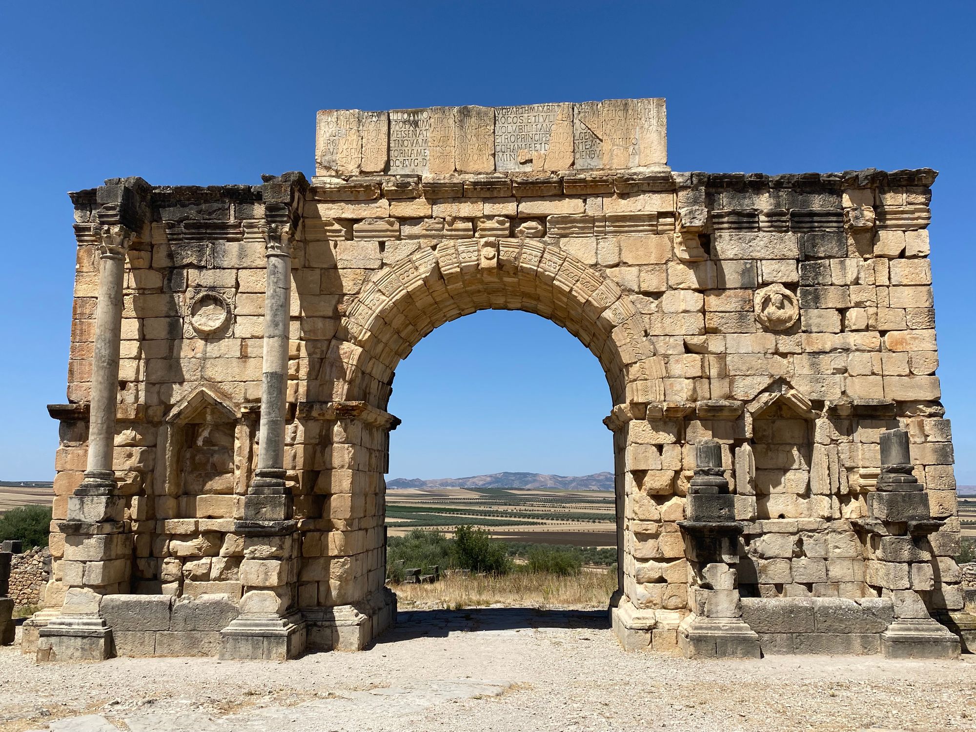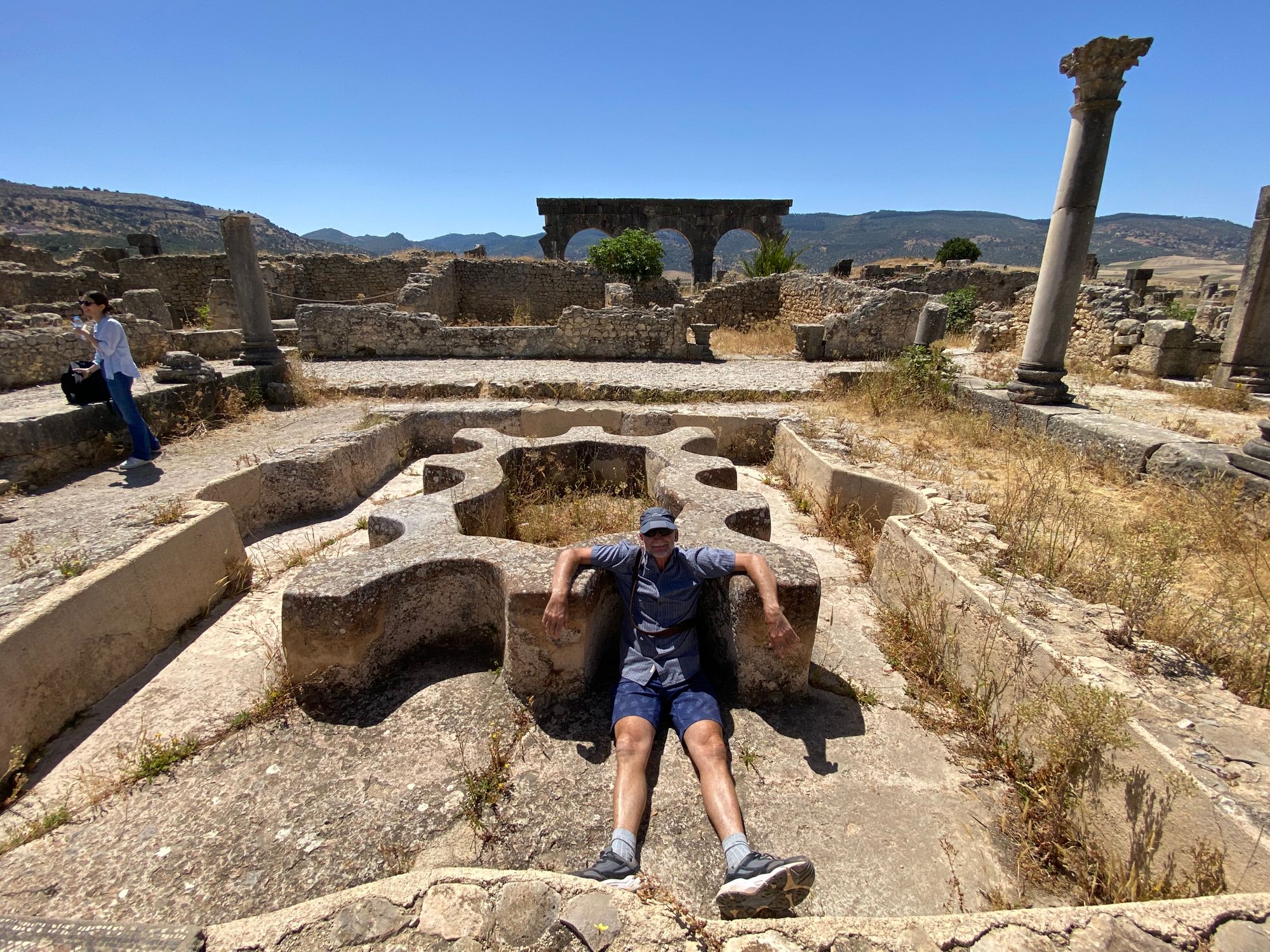 After giving Houssein, our driver, a much needed rest day, we headed to the countryside to visit the Roman ruins of Volubilus and then settled into a wine tasting afternoon at the Cave Volubilia winery. The ruins overlook the fertile agricultural plain on the slopes of the Zerhoun Mountains near the Islamic holy town of Moulay Idriss. First settled by the Carthaginians, it became the capital of Roman Mauritania in the 2nd century BC. Berber King Juba II and his wife Cleopatra Selene II, the daughter of Mark Antony and Cleopatra, expanded the settlement into a prosperous city and commercial hub.