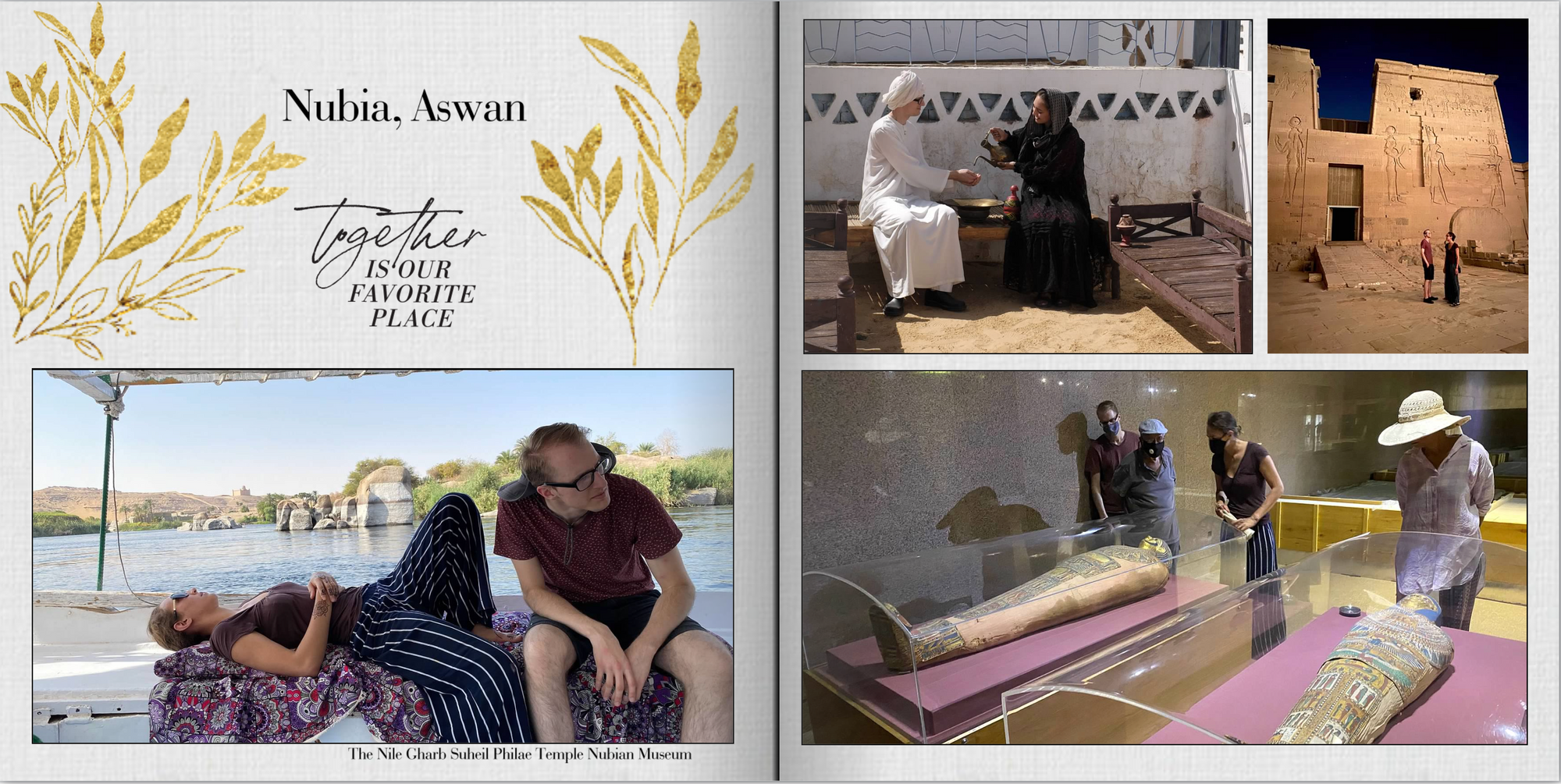 After my daughter was married in Topanga, she and her husband took their honeymoon in Italy and then came to Egypt where we celebrated their union Nubian style. Most of the henna and pre-party photos were taken by Nabra's cousin and professional photographer, Mai Mohsen. The album was made by me.