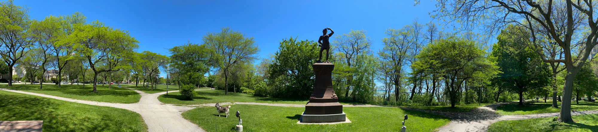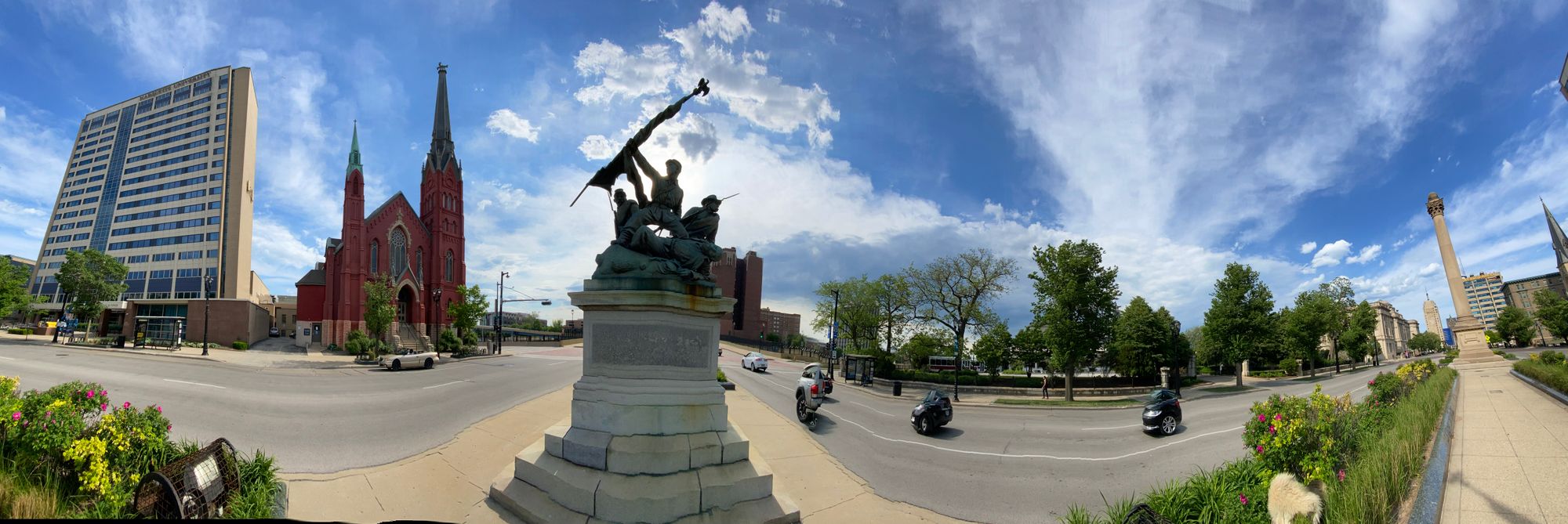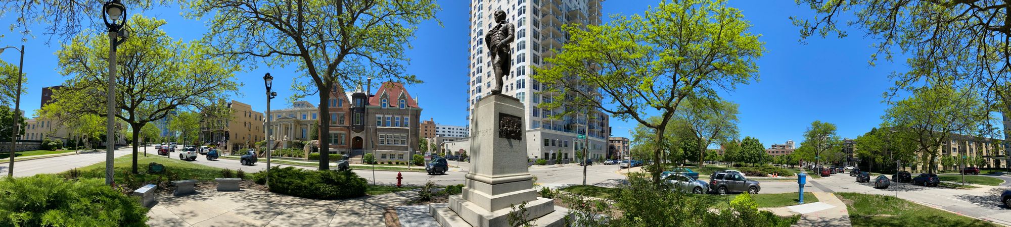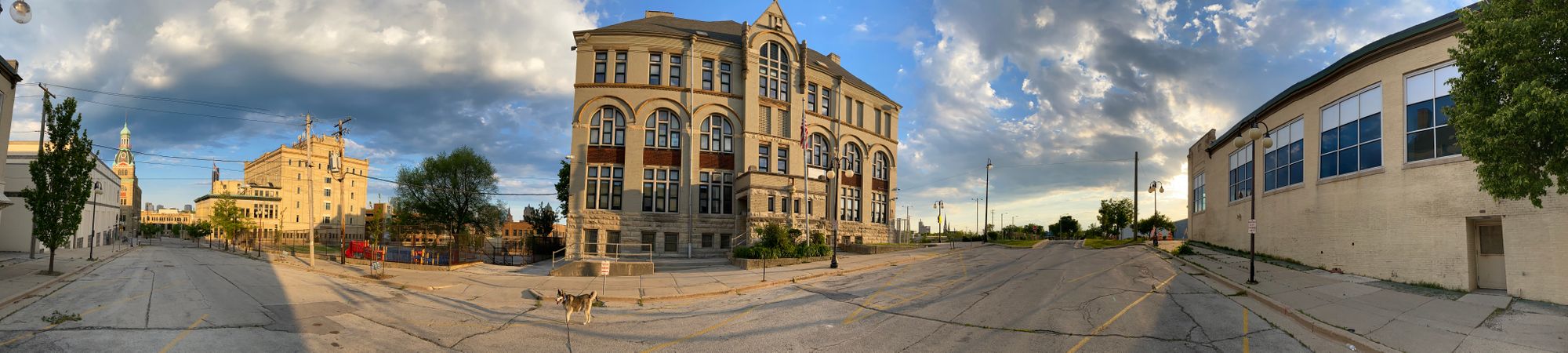 I concentrated on churches and monuments as they are quite visible and easy to spot when walking Holly, my Siberian Husky (she appears in some of them). Also, churches, in particular, are in all neighborhoods and the panoramas give you a glimpse of what that neighborhood's environment is like. It also gave me a reason to walk the dog in different parts of Milwaukee's inner city that I normally would not visit.