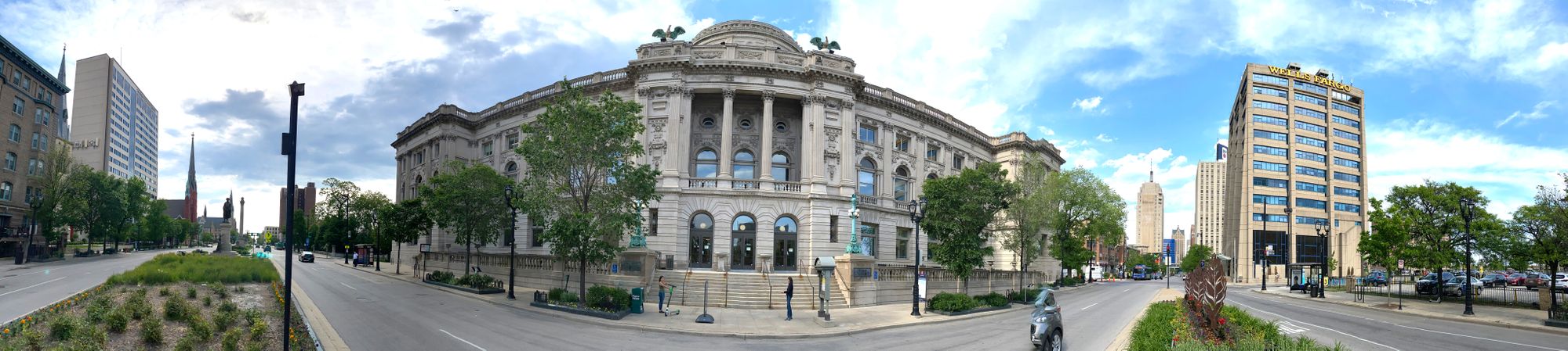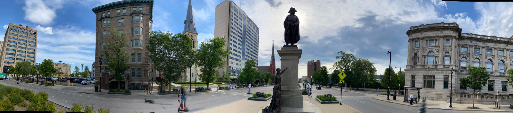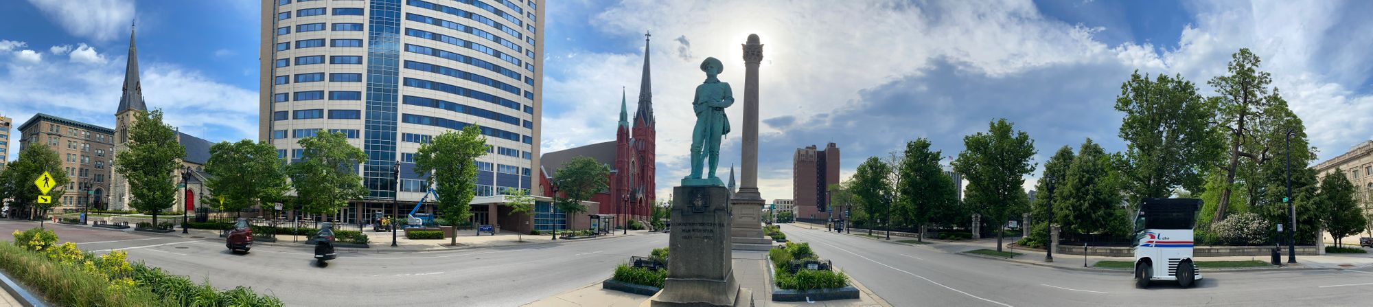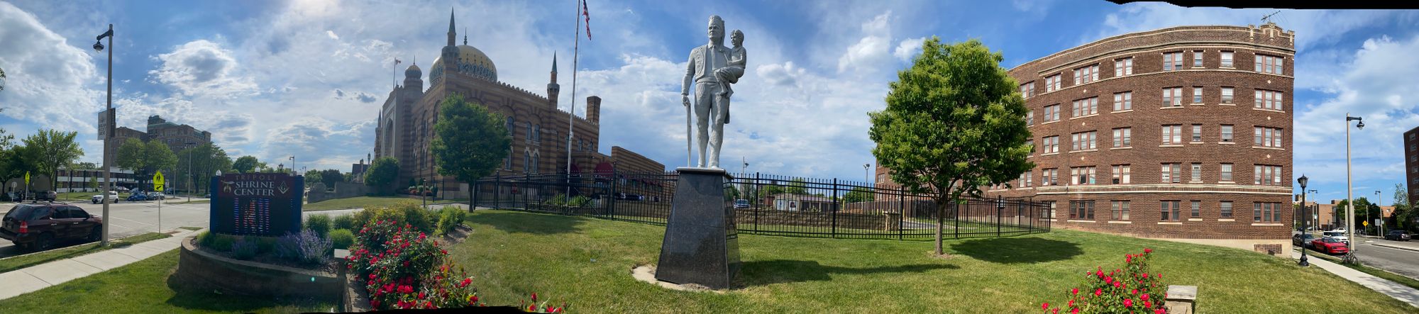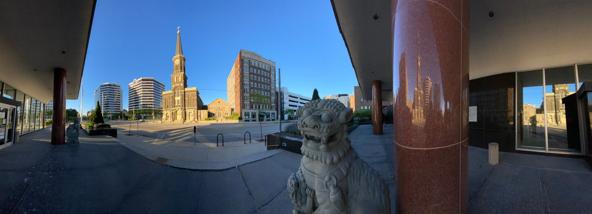 I concentrated on churches and monuments as they are quite visible and easy to spot when walking Holly, my Siberian Husky (she appears in some of them). Also, churches, in particular, are in all neighborhoods and the panoramas give you a glimpse of what that neighborhood's environment is like. It also gave me a reason to walk the dog in different parts of Milwaukee's inner city that I normally would not visit.