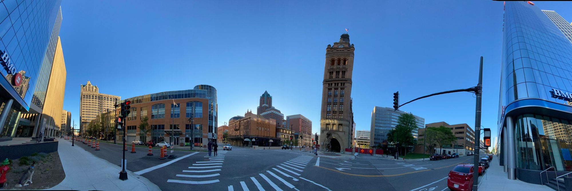 Not the greatest panorama, but I often pass it on the pooch walks as my Milwaukee house is on the other side of this complex