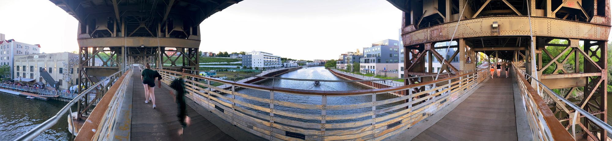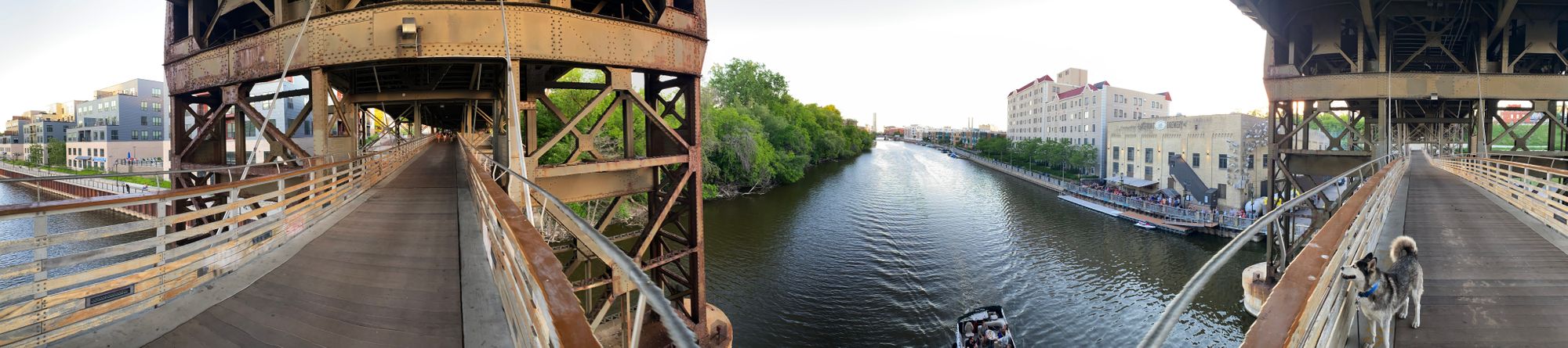 These last three panoramas are one of my "go to" pooch walk areas. The bridge and the Milwaukee River is at the end of the street where I have a house. There are a number of bridges and the riverwalks transition from urban paved walkways to earthen paths at river level here. Fantastic walks and Holly loves it. So many rabbits!