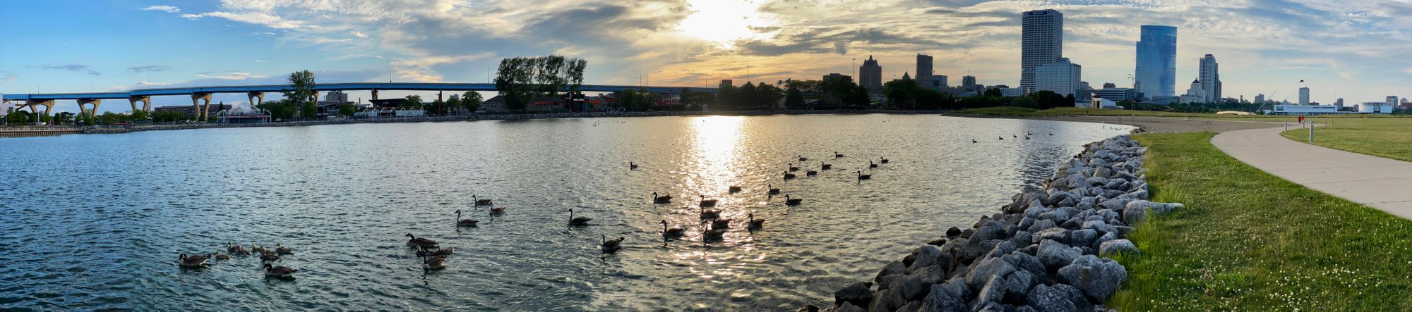 I thought the sunset photo of the Milwaukee skyline with geese and their young to be a fitting last panorama and last photo. But today I took the pooch on a walk along the river at a new area and since the river walks had been one of the "go to" places I think it is appropriate to include one for the Panorama | Milwaukee blog entry. Also, Holly loves the natural part of the river walk and it's been awhile since I took her there | because of these photography and panorama blog entries.