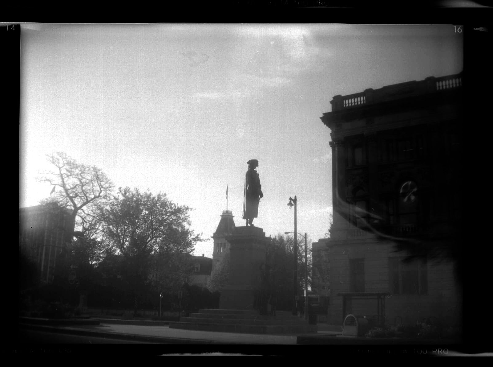 This is a picture of the back of American Revolutionary leader General George Washington. This is a picture of the same statue as photo number two but looking the other direction and not into the sun. More evenly exposed and details clearer.