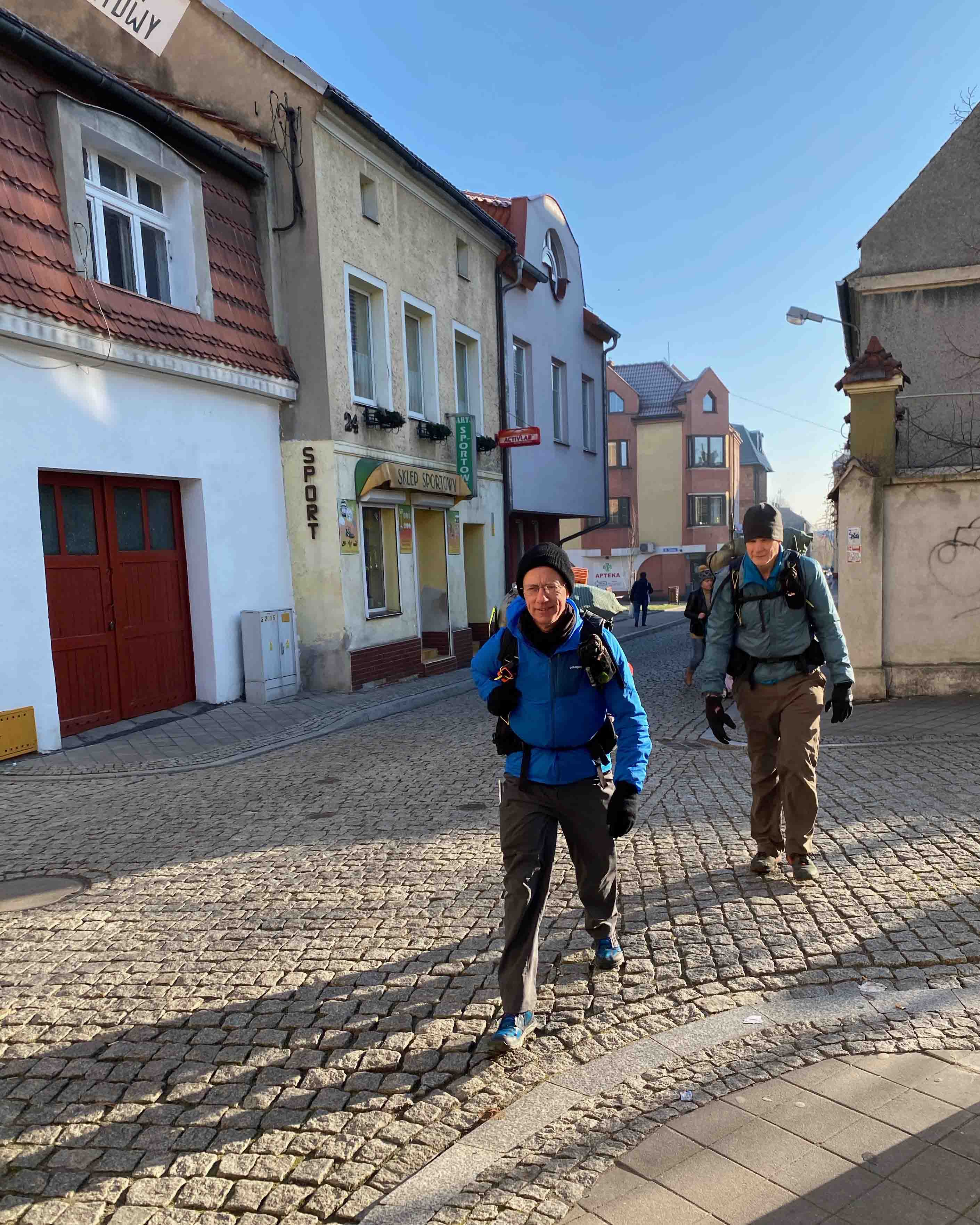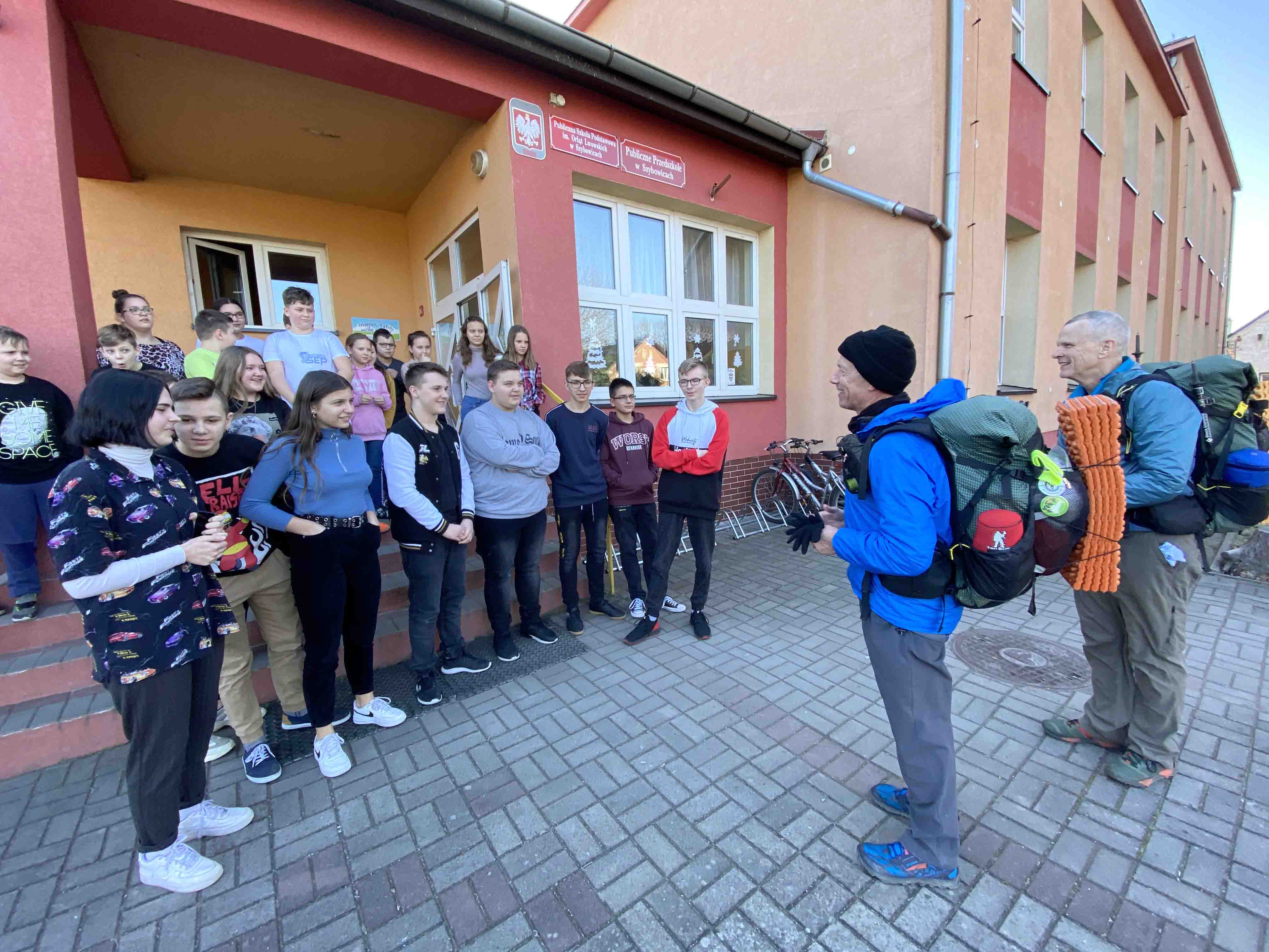 After an early morning press interview in Niemyslovice, commemoration ceremony at the Laczki massacre site and a school lecture in Biskupow, Al and Mike were only able to cover seven miles in sunny slightly above freezing day time temperatures. They bedded down tonight in a classroom at the Imiena Orlat Lwowskicz school in Szybowice.
