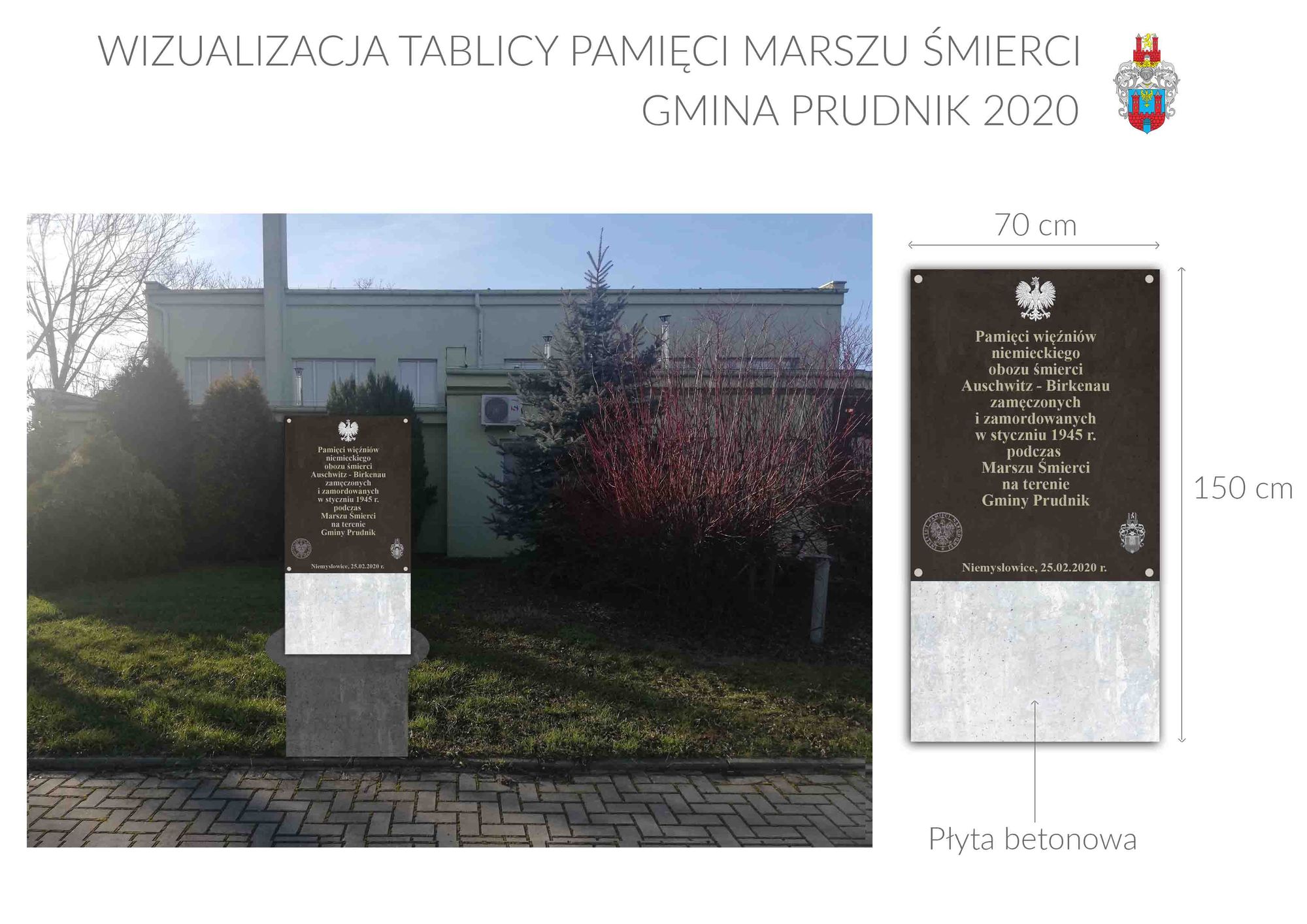 "In memory of prisoners of the German death camp Auschwitz-Birkenau who were murdered in January 1945 during the Death March in the Prudnik Municipality"
