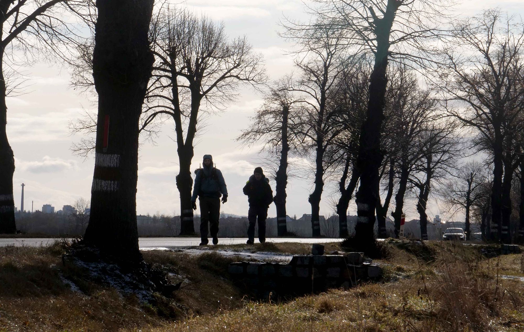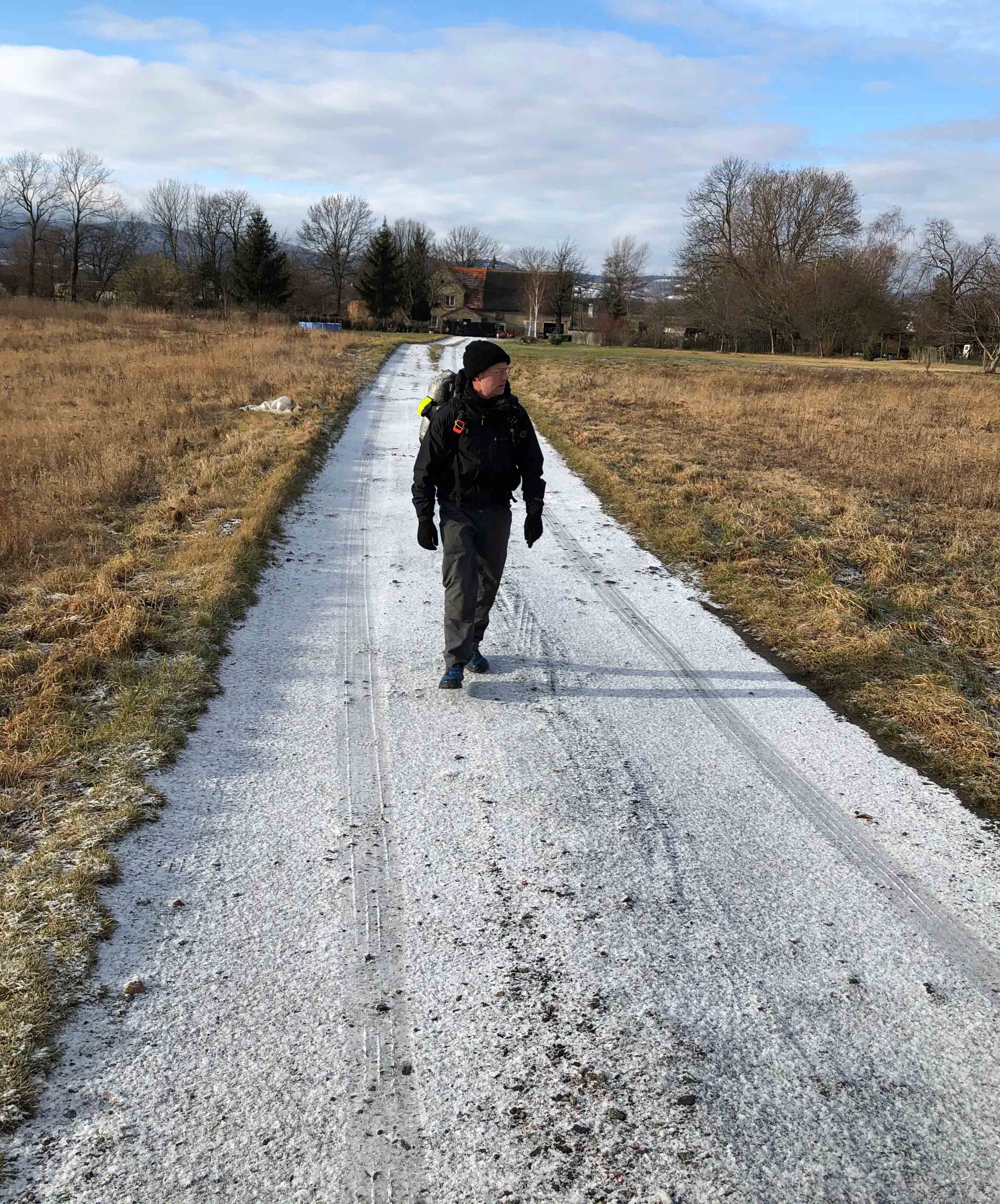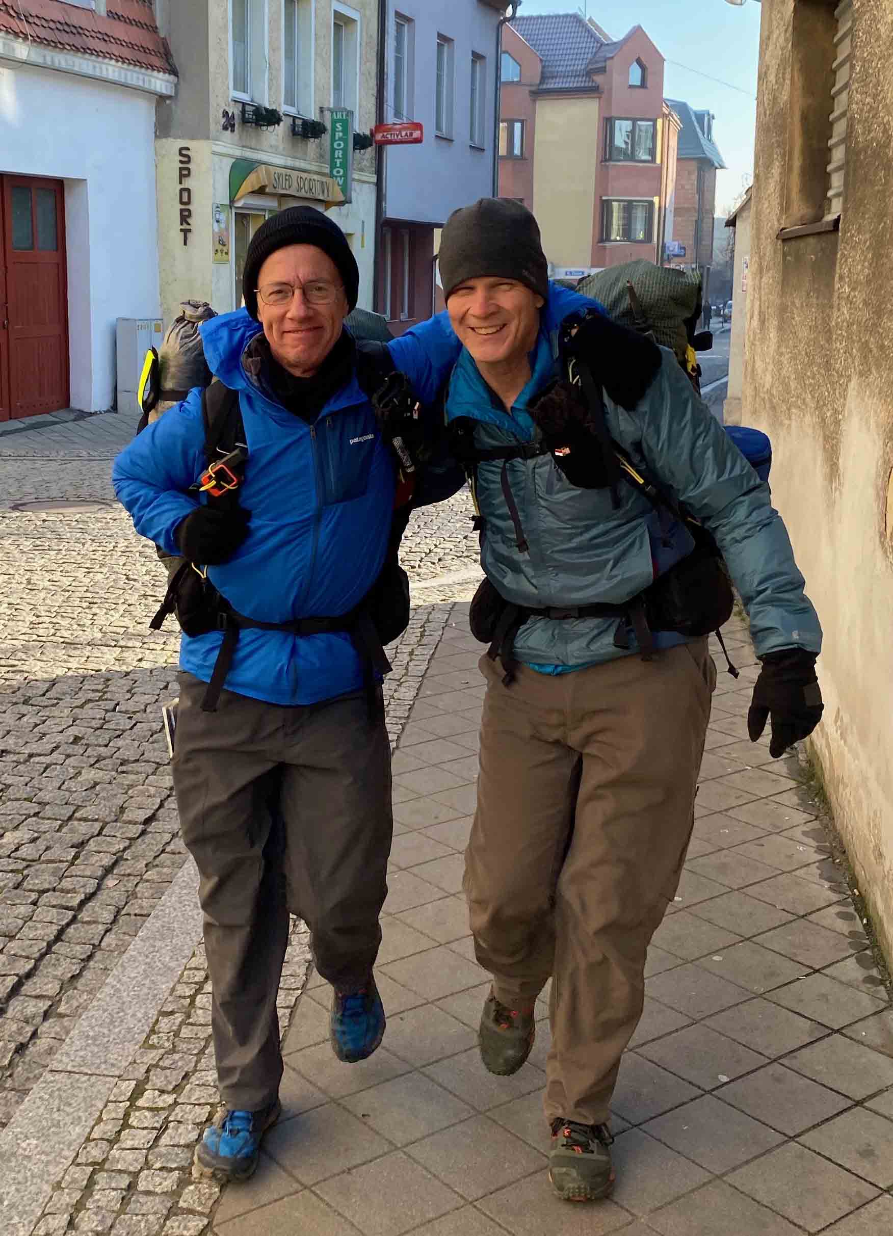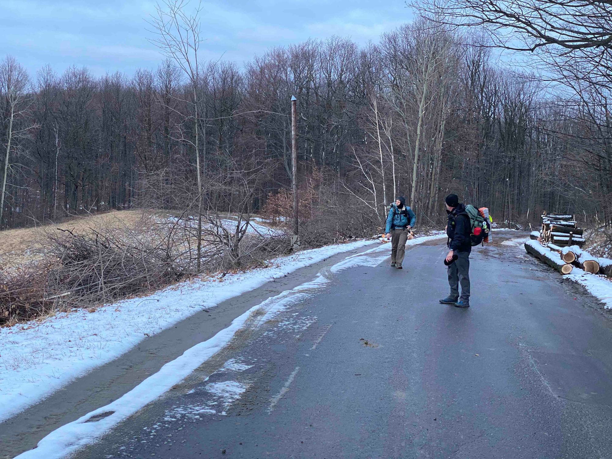 Al and Mike pushed hard today. Up early and on the road they covered 20 miles with tough going on snow covered mountain roads in just above freezing temperatures. The Death March, as historical documents showed, veered east instead of continuing in a more northerly and direct route to the collection point of numerous death marches at the Gross-Rosen concentration camp. Al speculates that possible Soviet Army advances west of the more direct route may have forced the Nazi SS soldiers to reroute via the mountains. More research on this needs to be done.