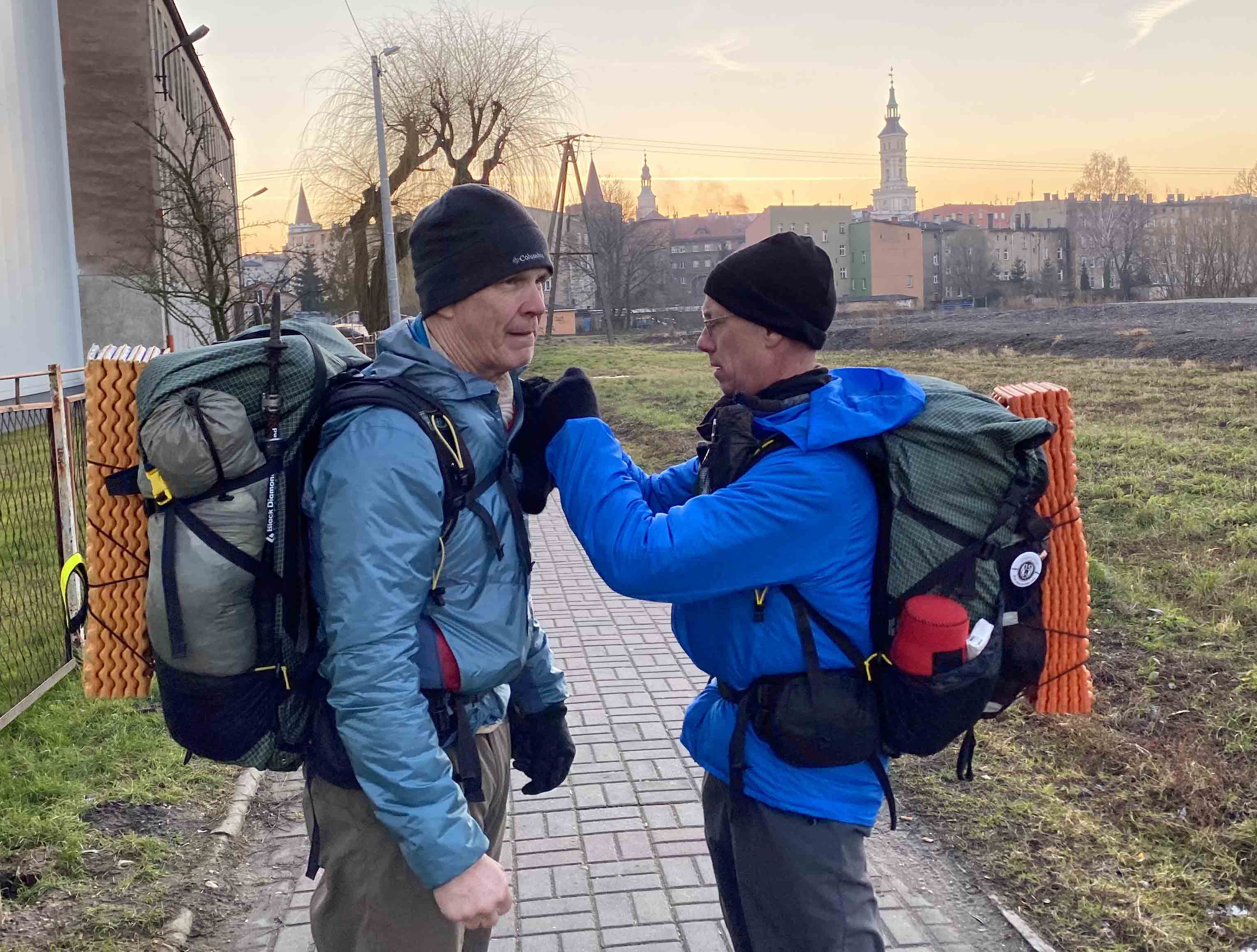 Additionally, as a student of history, I wanted to learn more about the Holocaust, World War II, and experience some other cultures. While the story of the Holocaust is filled with atrocities, it is a remarkable testimony to the human spirit as well. As we walk along the route that the death march took, we consider what the potential hardships experienced might have been. Obviously, we cannot come anywhere close to that as we are doing the walk under uniquely different circumstances. But the logistics for the Nazis to have considered a task as monumental in moving 4,000 sick and malnourished prisoners along country roads and through fields certainly tests the limits of credulity. Even more remarkable, and the question that we all keep considering is, how was it humanly possible for these people to press on, day after day, with no fat or energy stores, in a Polish winter where the temperature averaged between five and 14° F during that 13 day period. The Nazis did not give them very much food, so their energy source was from what they could steal and the kindness of strangers along the way. The fact that they were ill clothed and not very well shod, made it quite likely that they experienced hypothermia and frostbite. As we considered ways that they might have avoided frostbite, we think maybe they just put their hands in their armpits and down their pants, trying to keep their fingertips in contact with warmer parts of their body. Perhaps for the toes, it was simply the fact that they kept moving. That may also help to slightly reduce the risk of hypothermia. As far as having the energy to keep going, probably the most important thing was having the right frame of mind. Eli Wiesel describes in his book “Night“ that Hope was the most important thing to keep people alive. And Al says his father had said that he always knew he would survive the war. So whether it is having a loved one that you hope to be reunited with, or perhaps some unfinished business to attend to, it is these kinds of things that contributed to the survival of those that made it. And while many died, as Al points out, many stuck it out and made it out alive.