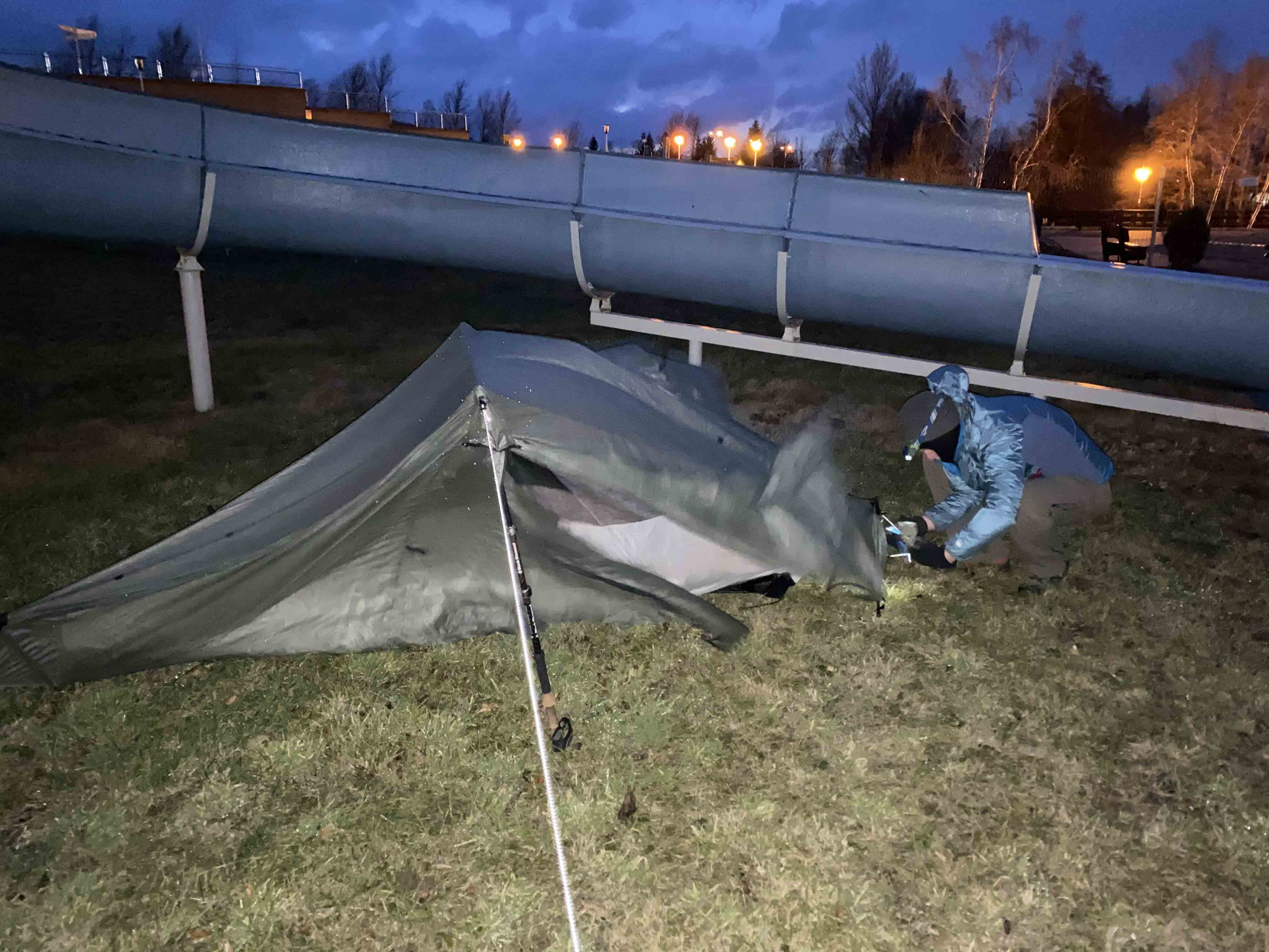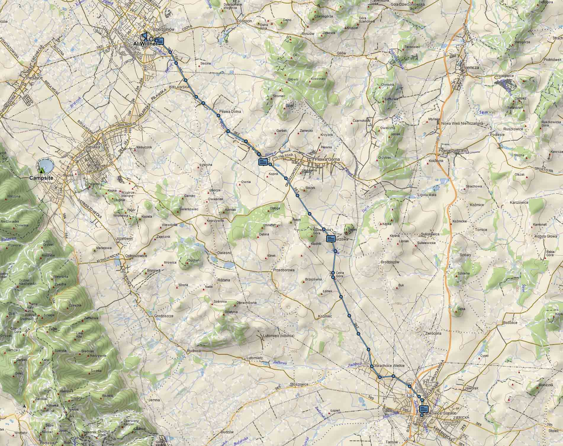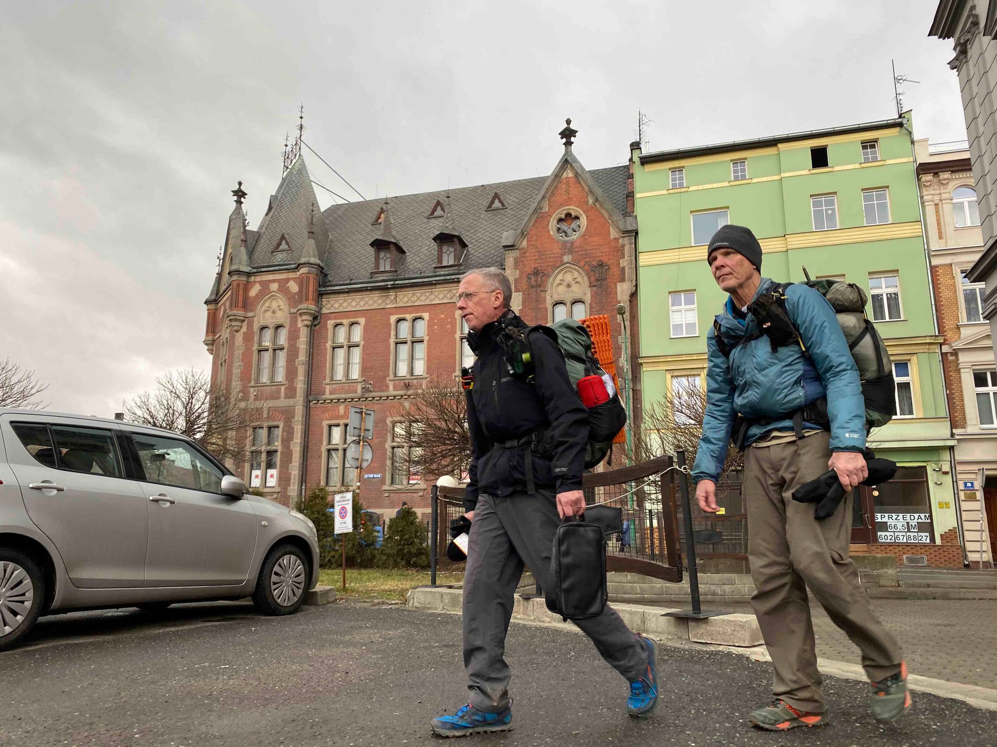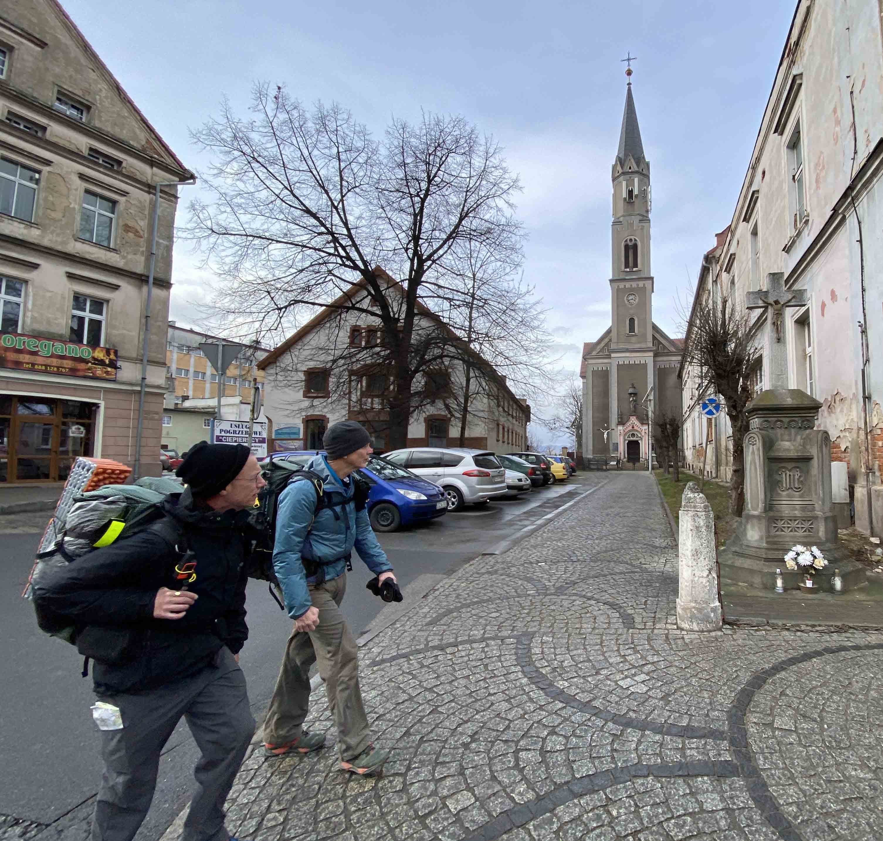 Al and Mike - in windy conditions and walking along a major road - were able to cover 17 miles. As darkness fell they approached the city of Dzierzoniow and were told by a local outdoor enthusiast that camping in the vicinity of the city would be difficult. He directed them to a park facility out of town were they set up camp in cold intermittent rain and strong winds of 22 mph.