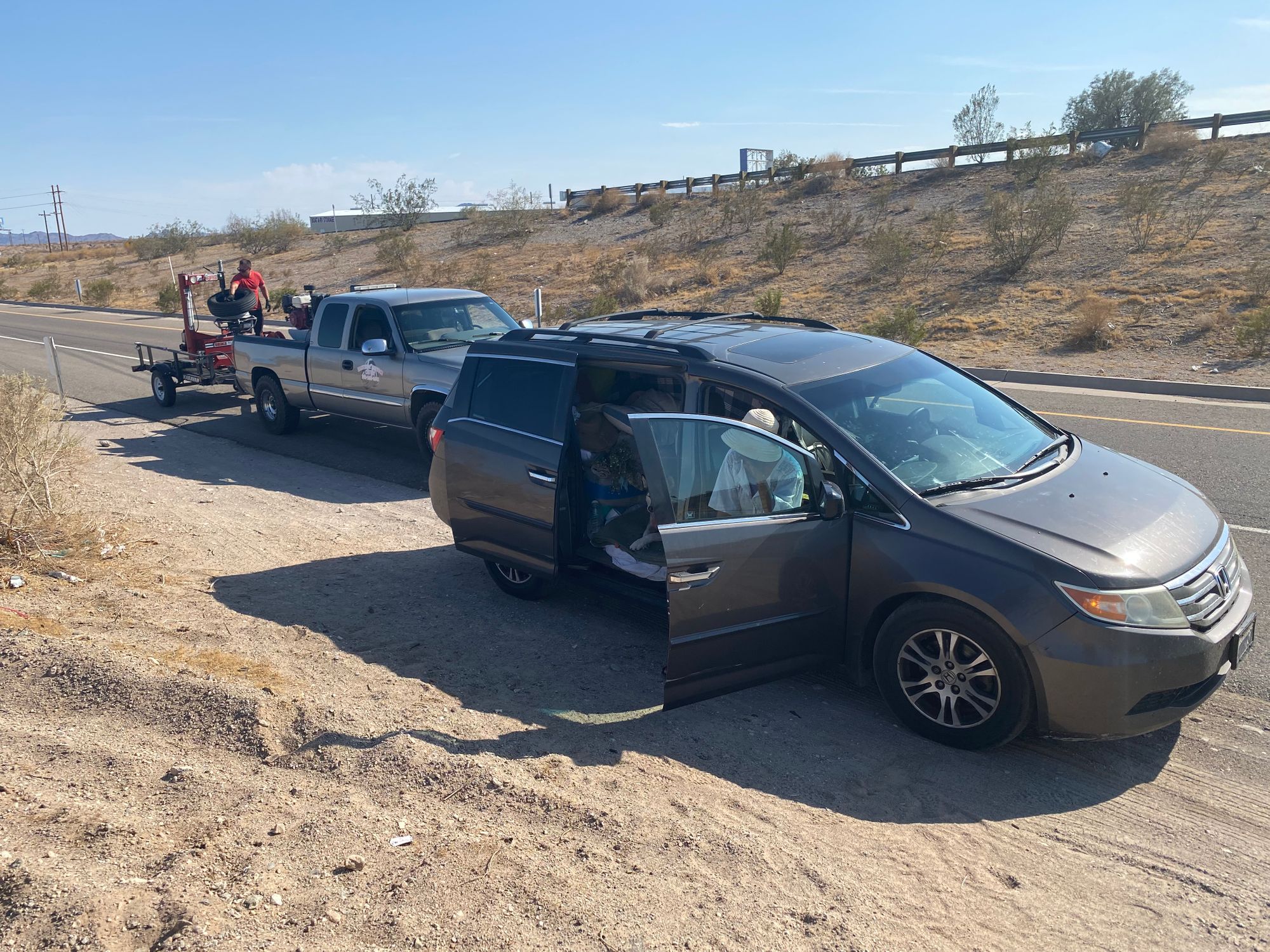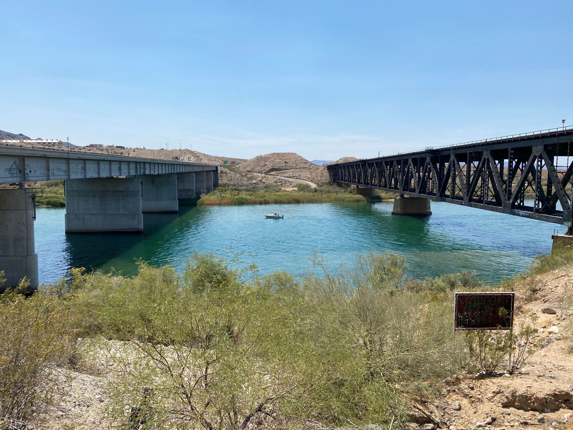 With a heat wave affecting the southwest, a fully loaded car and a cooped up pooch, we decided to press on to Topanga with a trip along old Route 66 which we had done when the kids were kids some twenty years ago. Also, thoughts of dad and the many cross country road trips we had done and that probably we had passed along the route at some time. So outside Ash Fork, Arizona we turned off the interstate and started a fascinating 157 miles drive along Route 66 in Arizona ending at the Colorado River. Great scenes of towns striving to capitalize on the notoriety of the famous hiway. Some successfully like Seligman and some not so much so.