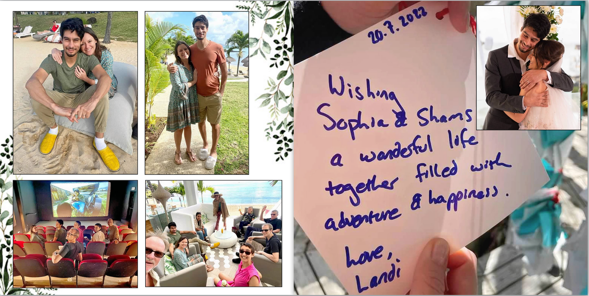 Last summer my son, Shamseddiin, married a beautiful and lovely South African girl, Sophia Grobler, at the Grand Gaube Lux resort in Mauritius. An absolutely wonderful occasion with close family and a few friends in a magical oceanside setting. Most of the photographs were done by excellent Mauritian photographer Raj Sharma Baboo with contributions from all of us with our smart phones.