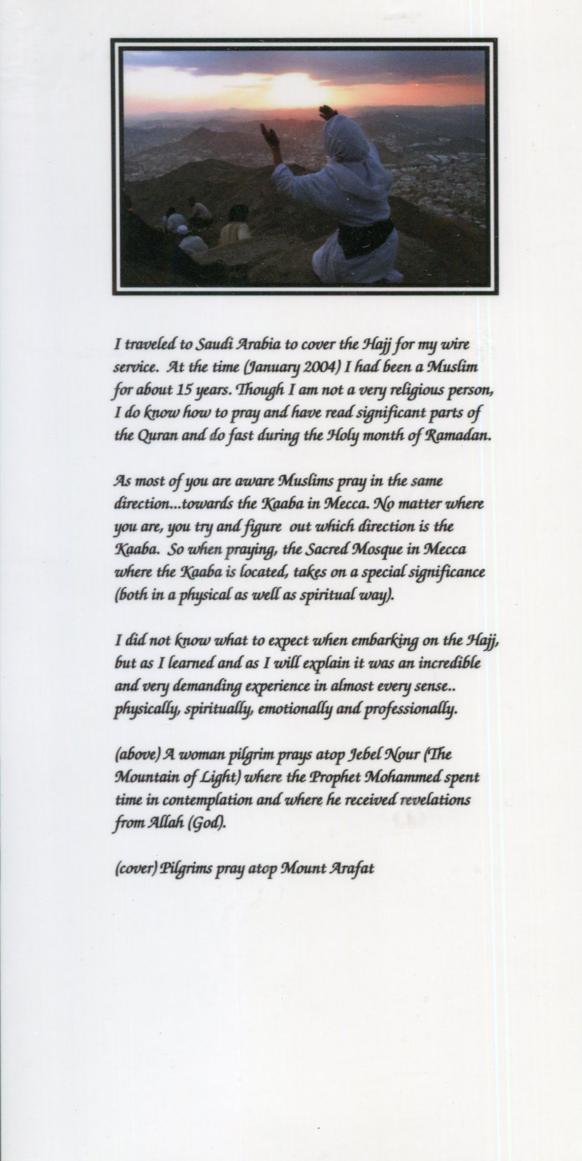 This is a self-published book I did after covering and completing the pilgrimage to Mecca in January 2004.