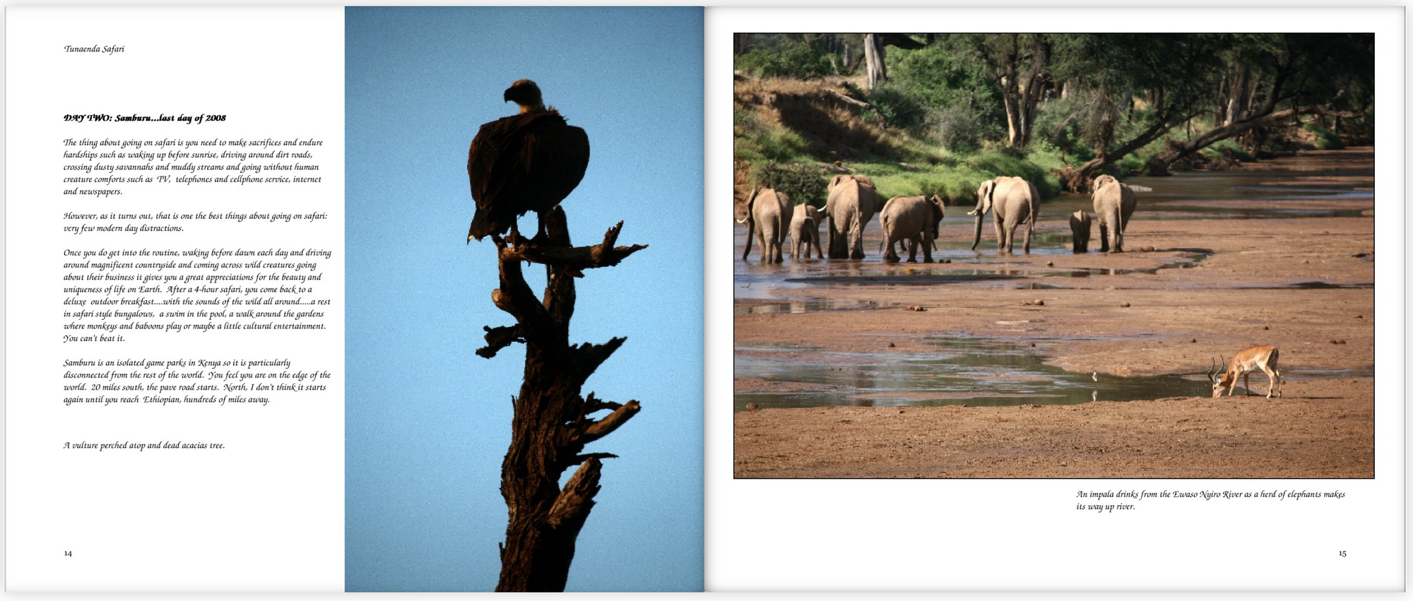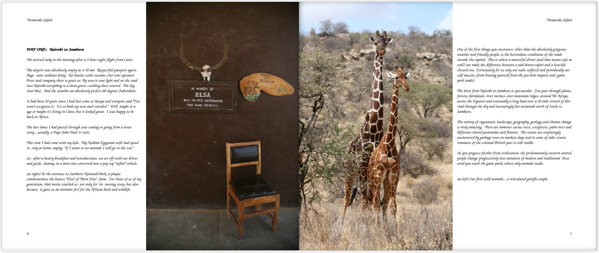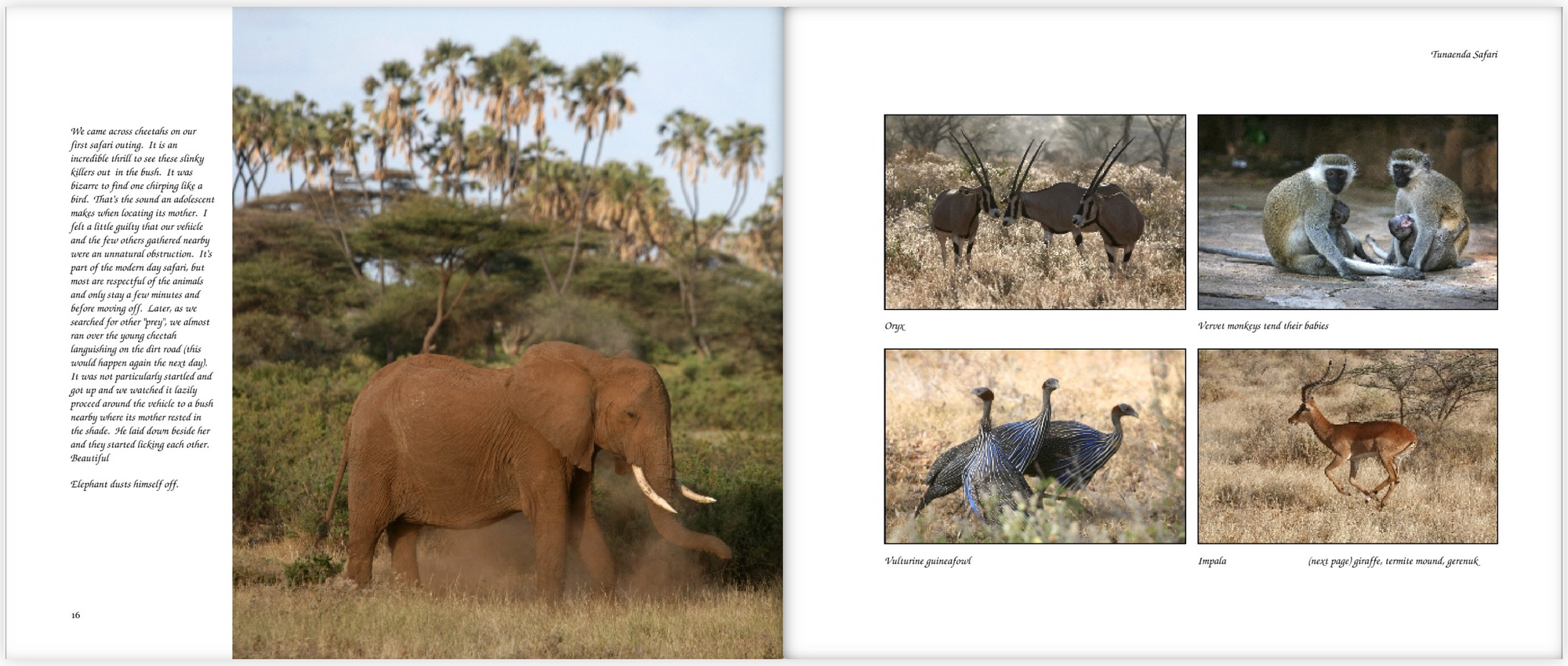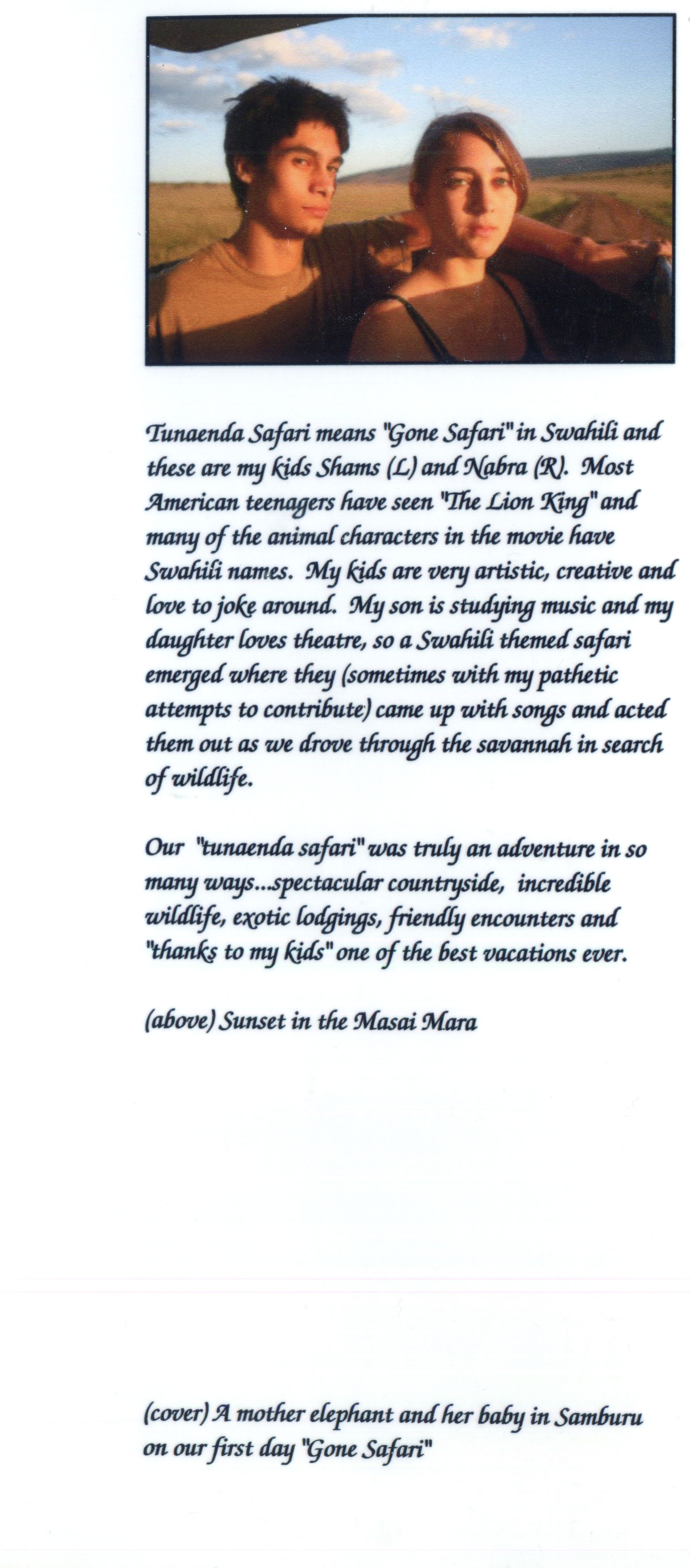 This is a self-published book I did after taking a safari to Kenya with my son, Shams and daughter, Nabra.