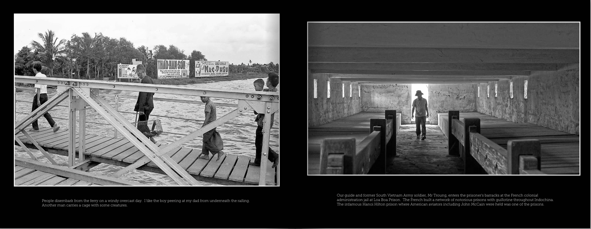 Our guide and former South Vietnam Army soldier, Mr Troung, enters the prisoner’s barracks at the French colonial administration jail at Loa Boa Prison. The French built a network of notorious prisons with guillotine throughout Indochina. The infamous Hanoi Hilton prison where American aviators including John McCain were held was one of the prisons.